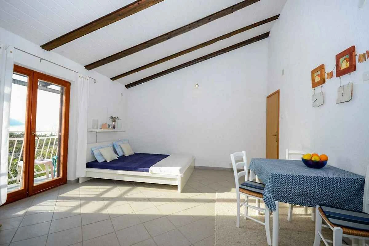 Lo studio si trova in un condominio. La proprietà si trova nel centro del paese. Anche per la vista dalla proprietà sul mare, la dimora è popolare. A uso comune sono disponibili: prato per prendere il sole, lettino prendisole, possibilità di barbecue, terrazza e mobili da giardino.