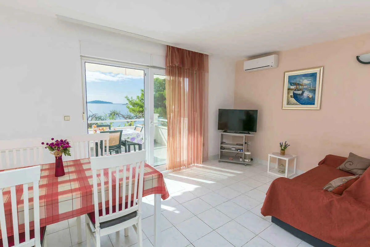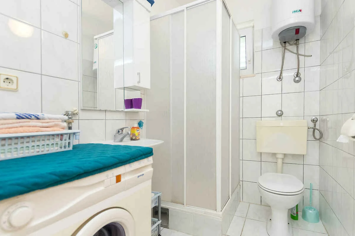 L' appartamento vacanze si trova in una casa bifamiliare ed è arredato moderno e funzionale. La proprietà si trova in una zona residenziale, in periferia. Anche a causa della vista dalla struttura sul mare e tranquilla e soleggiata posizione sull'acqua, il domicilio è popolare. Attrezzature in comune: doccia da giardino, possibilità di grigliare, terrazza e mobili da giardino.
