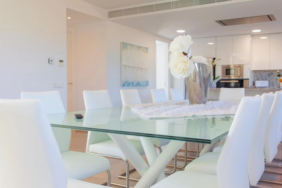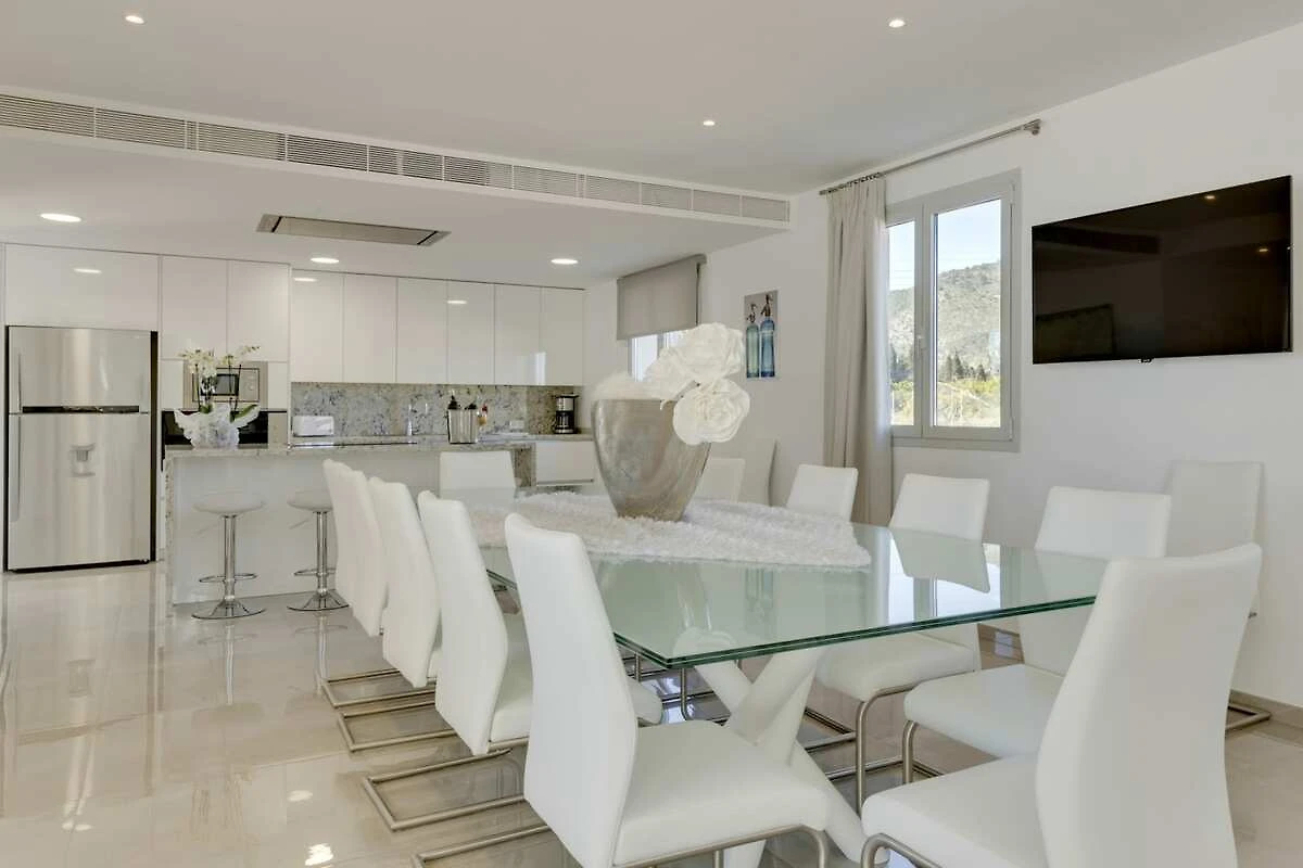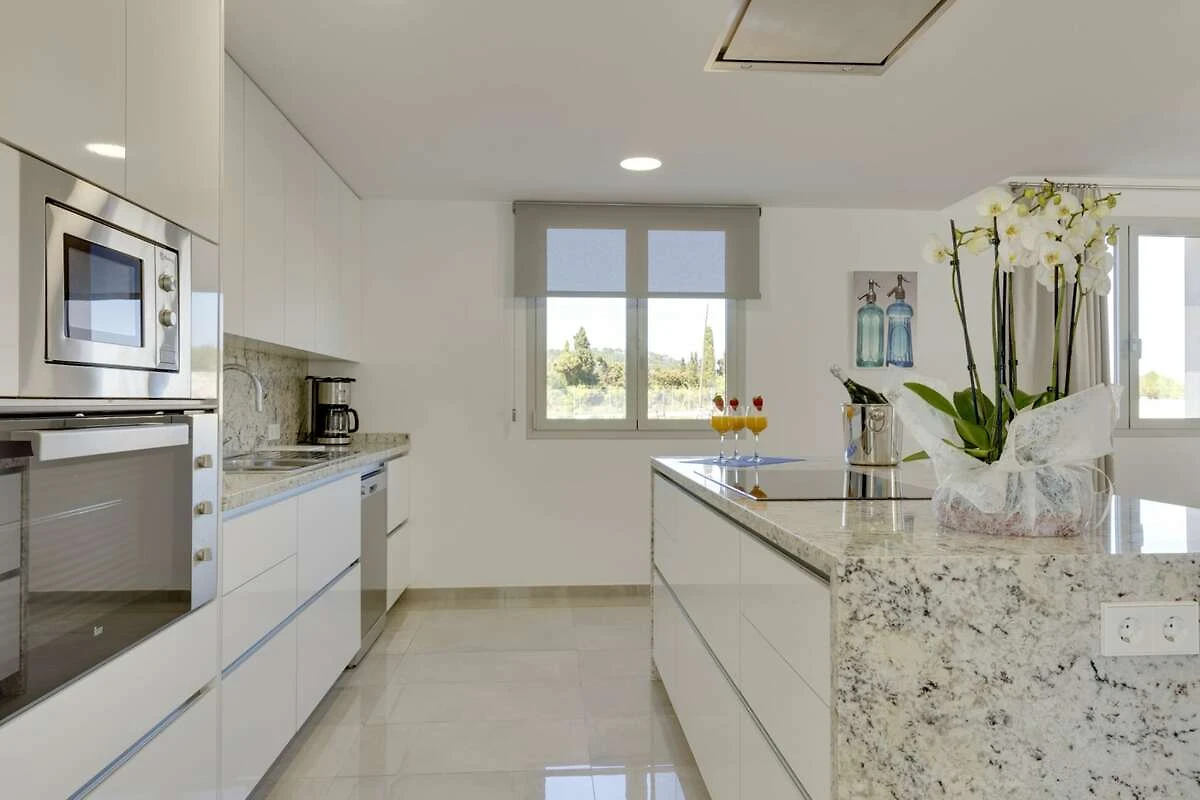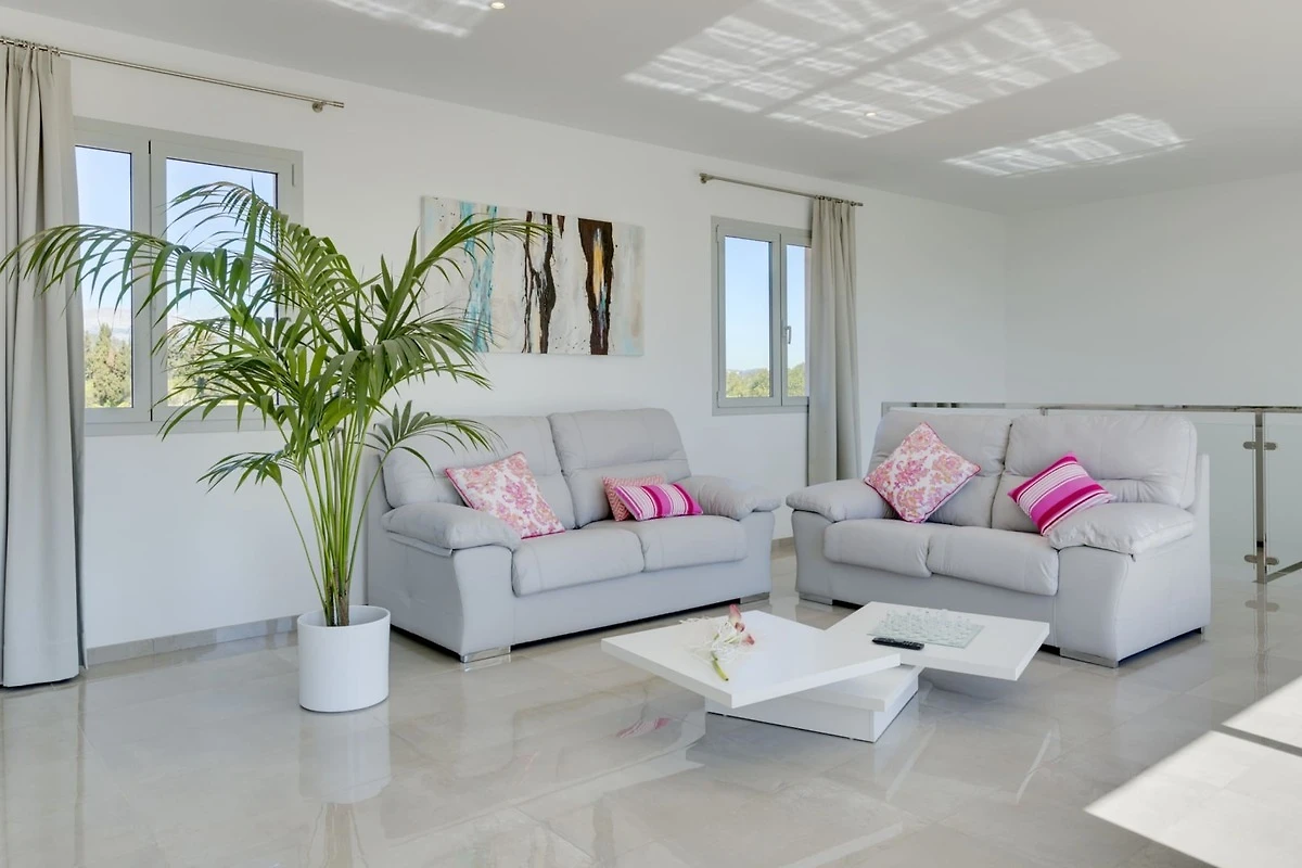 Questa splendida villa Eden Son Frare offre un mix eccezionale di lusso, comfort e tranquillità, offrendo un rifugio perfetto per famiglie o gruppi. Con sette spaziose camere matrimoniali, ciascuna dotata di bagno privato, la proprietà può ospitare comodamente fino a 14 persone. Il design moderno e minimalista e le finiture di alta qualità creano un'atmosfera accogliente in tutta la villa. Un ampio soggiorno con camino, una zona pranzo a pianta aperta e una cucina completamente attrezzata con isola centrale offrono ampio spazio per il relax e l'intrattenimento.
