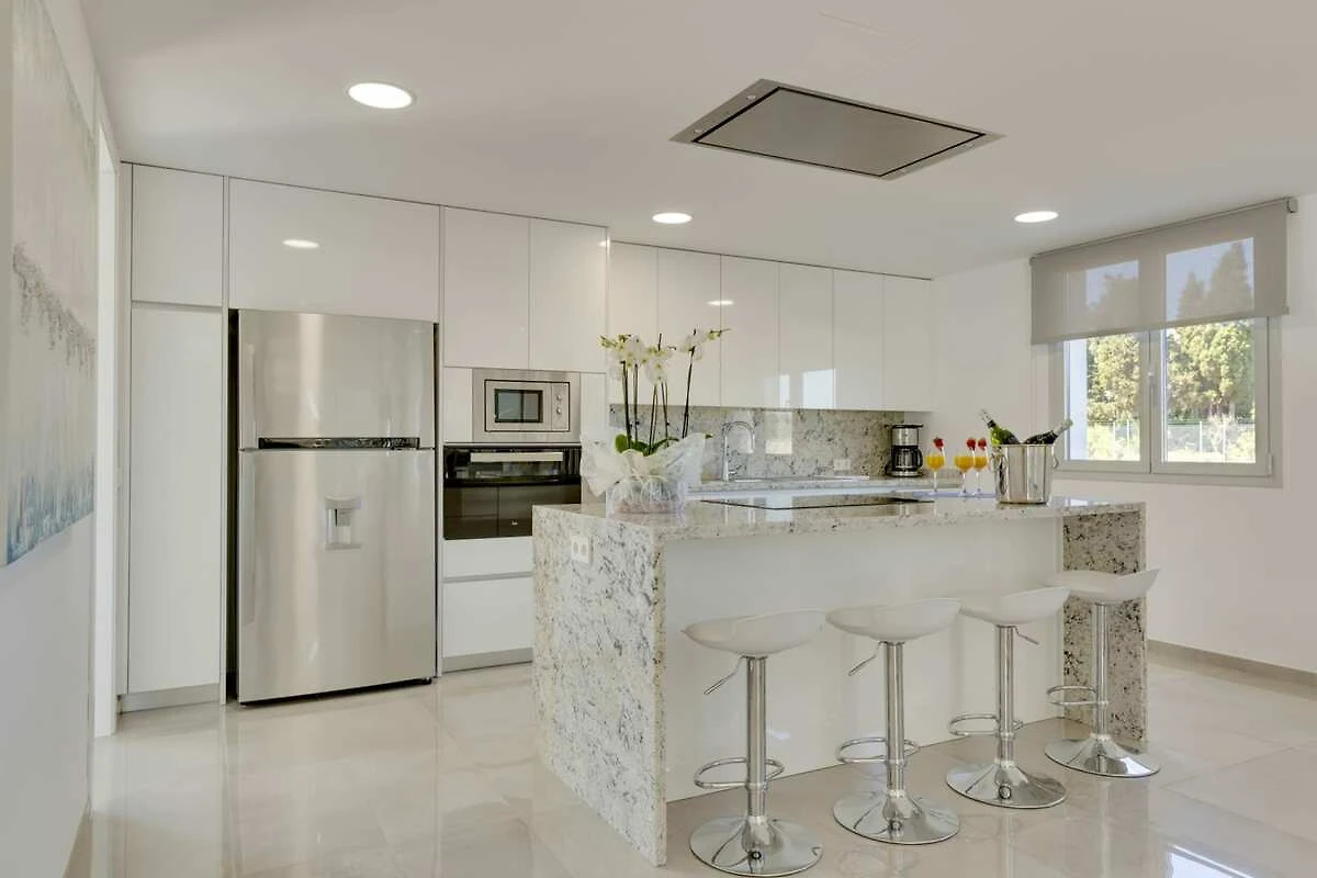 Una cucina ben attrezzata ha reso la cucina un gioco da ragazzi, Abbiamo usato il frigorifero, il microonde e la macchina del caffè ogni giorno, L'isola centrale era un ottimo posto per la colazione e chiacchiere informali,