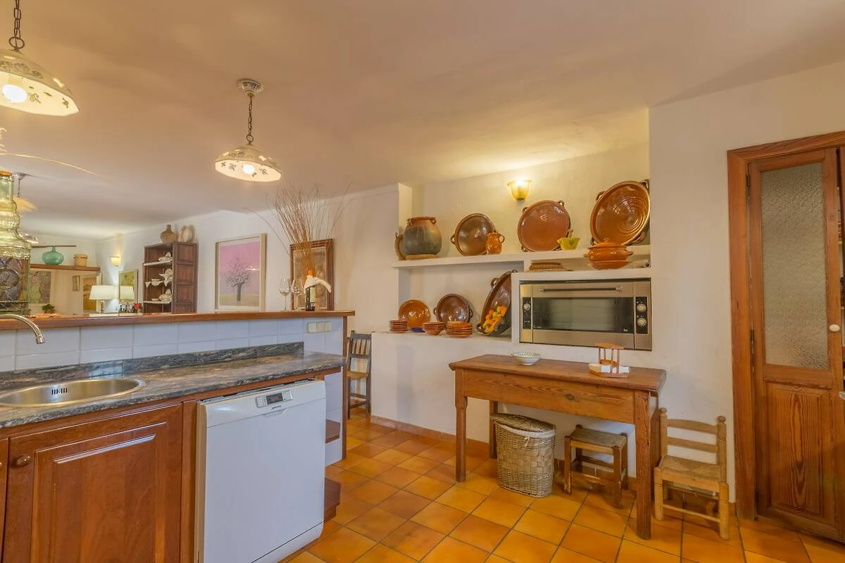 La villa dispone di sistemazioni spaziose progettate in uno stile rustico tradizionale maiorchino. Con tre camere matrimoniali, una camera tripla e tre bagni, la proprietà può ospitare comodamente fino a nove persone, il che la rende perfetta per famiglie o gruppi di amici. La cucina completamente attrezzata offre tutti i comfort necessari per preparare i pasti e l'accogliente soggiorno, completo di camino, è il luogo perfetto per rilassarsi dopo una giornata di esplorazione. La proprietà è inoltre dotata di aria condizionata e offre la connessione Wi-Fi gratuita, garantendo comfort e connettività per tutto il soggiorno.