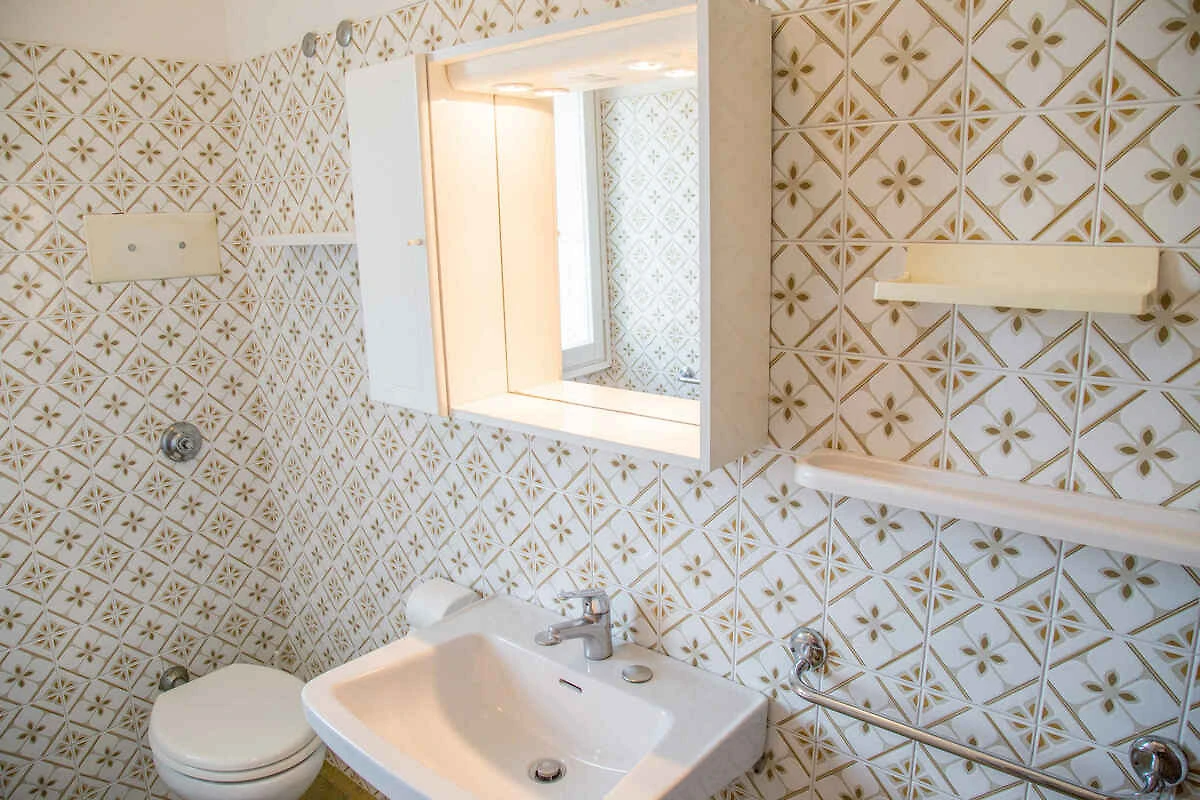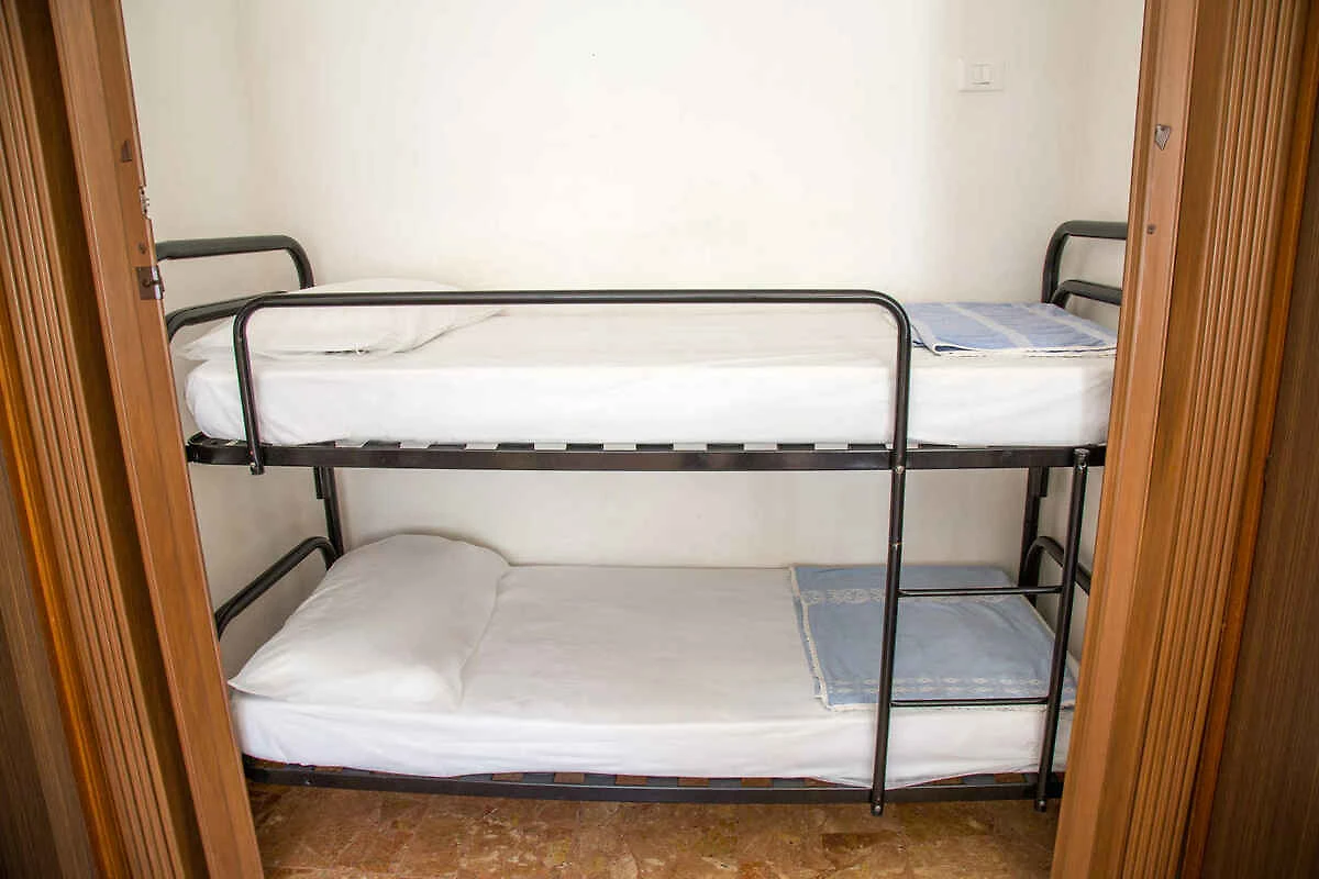 L'ingresso nel vostro appartamento per le vacanze si trova su diversi piani. Soggiorno/camera da letto con 1 letto a castello, TV, (5 posti) e accesso al balcone. Camera da letto con 1 letto matrimoniale, 1 letto aggiuntivo su letto pieghevole, 1 lettino e accesso alla terrazza. Angolo cottura nel soggiorno/camera da letto con (5 posti), fornello a gas (4 fuochi), frigorifero (congelatore), microonde e accesso alla terrazza. Bagno con doccia, WC, bidet e finestra.