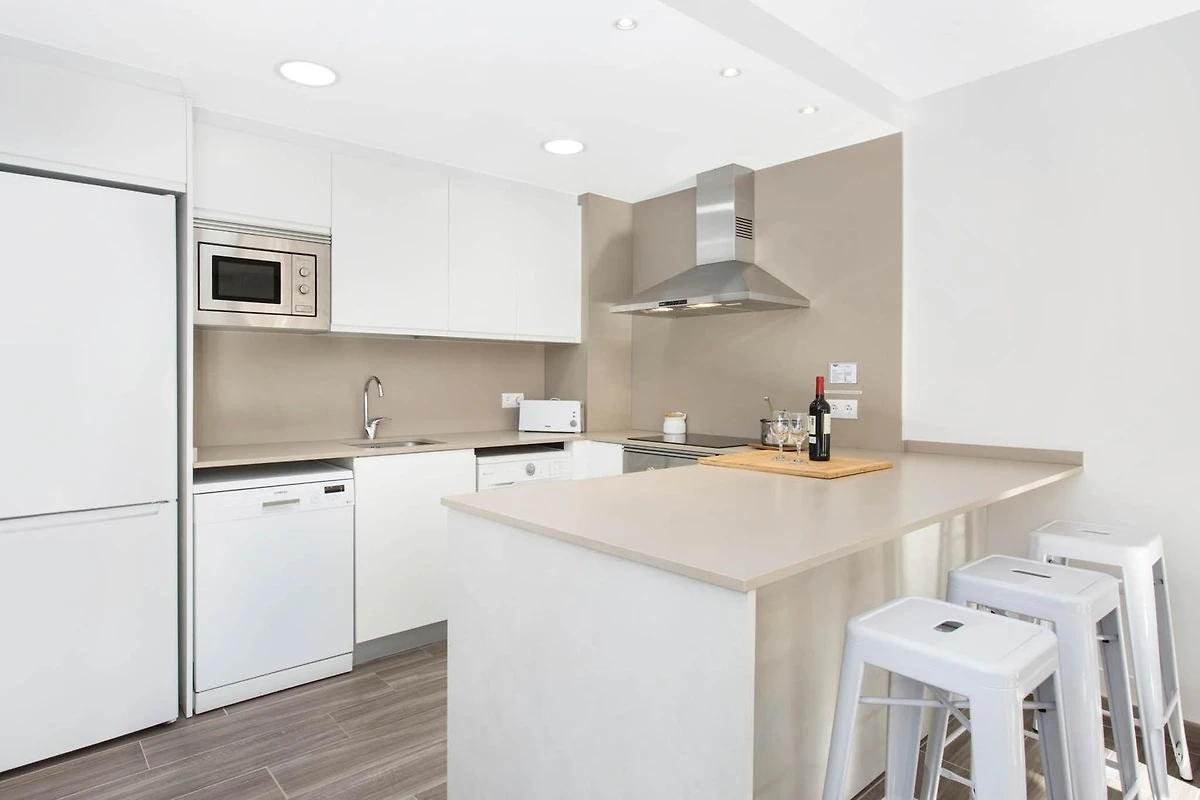 L'appartamento dispone di una cucina a pianta aperta completamente attrezzata, progettata sia per la comodità che per lo stile. Include un piano cottura in vetroceramica, frigorifero, microonde, forno e freezer. Una lavastoviglie e un set completo di piatti e posate rendono i pasti senza sforzo. Una macchina per il caffè e un tostapane aggiungono ulteriore comfort, perfetti per mattine rilassate. Il bagno ben tenuto assicura un soggiorno rinfrescante e confortevole.