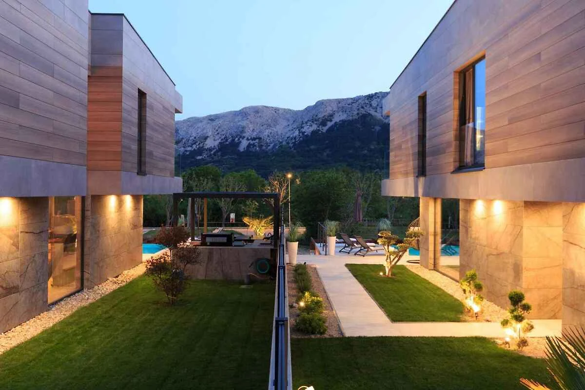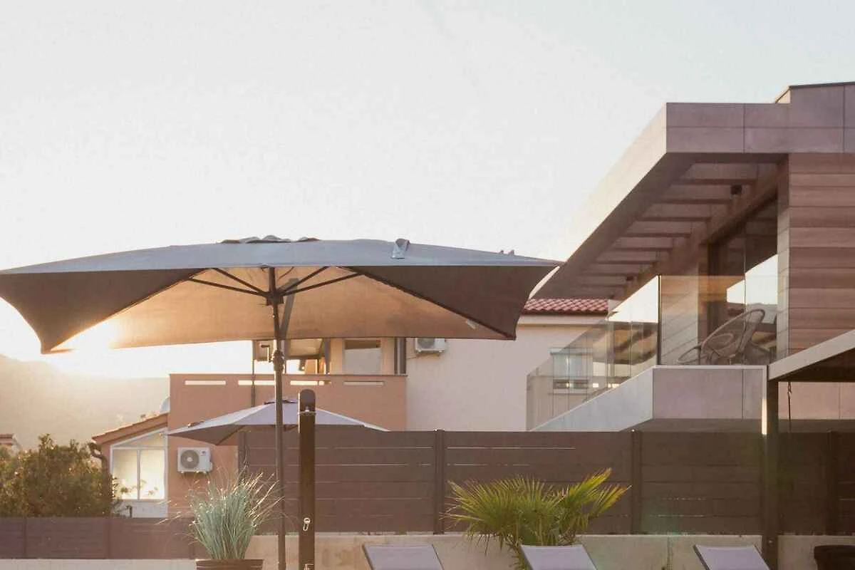 Baška. La villa si trova su un terreno recintato con prato, arbusti e alberi, delimitato da una recinzione. L’accesso avviene tramite una strada laterale (asfaltata). Parcheggio sulla proprietà.