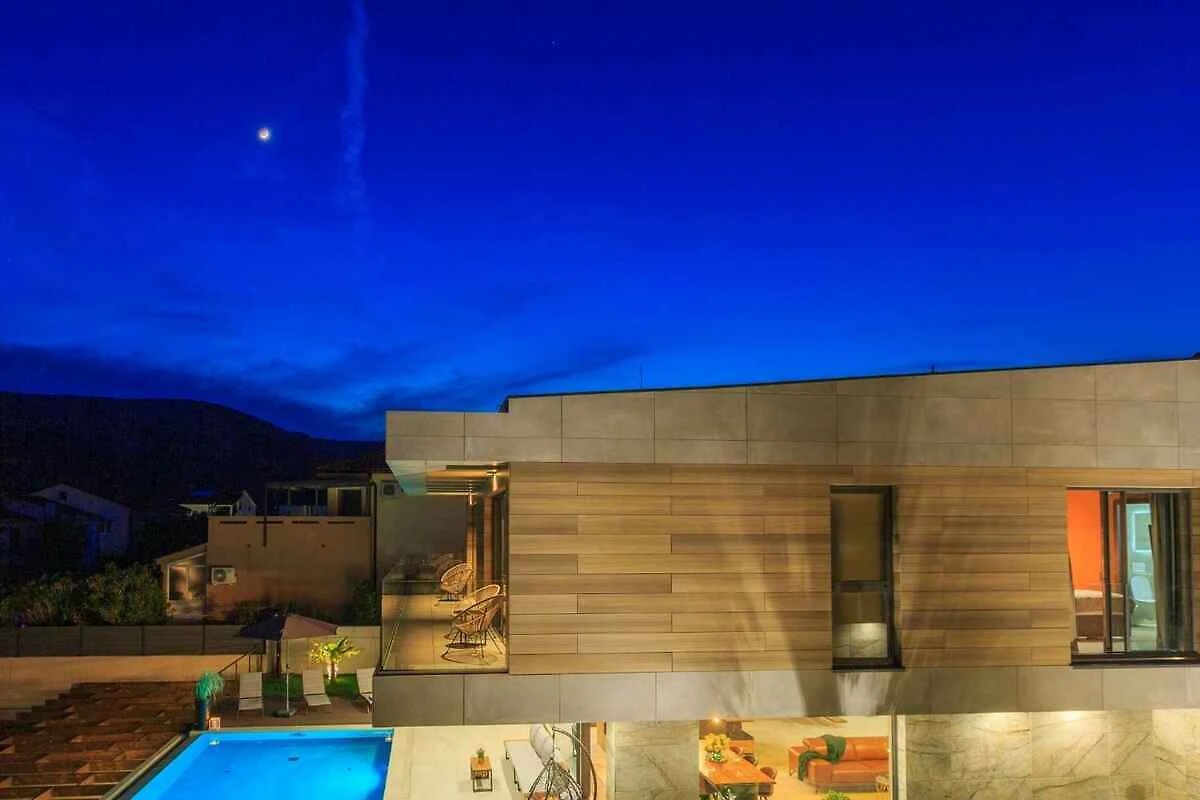 La villa indipendente è arredata in modo moderno e lussuoso. La proprietà si trova in una zona vivace, in un quartiere residenziale, ai margini del paese. Anche per la vista panoramica dalla proprietà e per la posizione soleggiata, la dimora è molto apprezzata. A uso esclusivo sono a disposizione: lettino prendisole, doccia da giardino, possibilità di barbecue, terrazza, mobili da giardino e cortile.