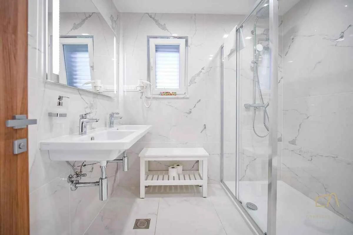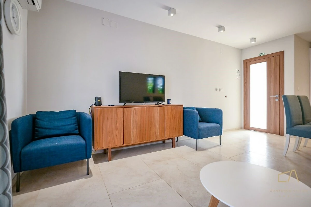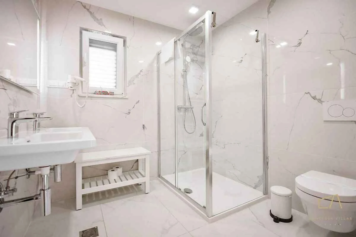 Soggiorno con 1 letto aggiuntivo su divano/sofa, angolo di seduta, TV e zona pranzo (6 posti). Camera da letto con 1 letto matrimoniale e TV. Camera da letto con 1 letto matrimoniale. Cucina con zona pranzo (6 posti), fornello elettrico, frigorifero, microonde, caffettiera e bollitore elettrico. Bagno con doccia, WC e finestra. Bagno con doccia, WC, bidet e finestra. Bagno con vasca da bagno, WC e finestra. Camera da letto con 1 letto matrimoniale.