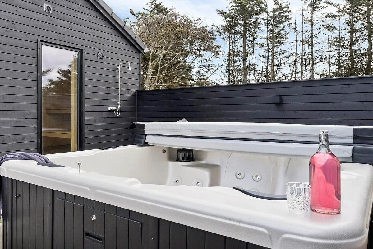Per chi desidera rilassarsi dallo stress della vita quotidiana, il cottage offre una splendida area benessere all'aperto. Qui potrete godervi un momento di relax nella spa all'aperto, fare un tuffo caldo nella sauna esterna o risciacquarvi le avventure della giornata sotto la doccia esterna. Queste strutture sono perfette per trovare pace e godersi l'aria fresca.