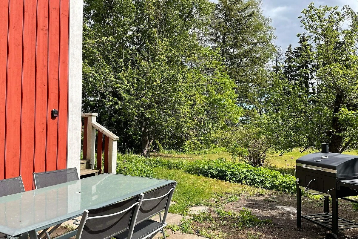 Soggiorno(letto pieghevole (1 pers.)), Cucina separata(mobile cucina(elettrico), caffettiera, forno a microonde, lavastoviglie, frigo con congelatore, acqua dal pozzo), Soggiorno/camera da letto(TV(canali TV svedesi)), Camera da letto(letto matrimoniale), Camera da letto(letto singolo), Bagno(asciugabiancheria, lavabo, doccia, WC, lavatrice), riscaldamento(elettrico), giardino, parcheggio
