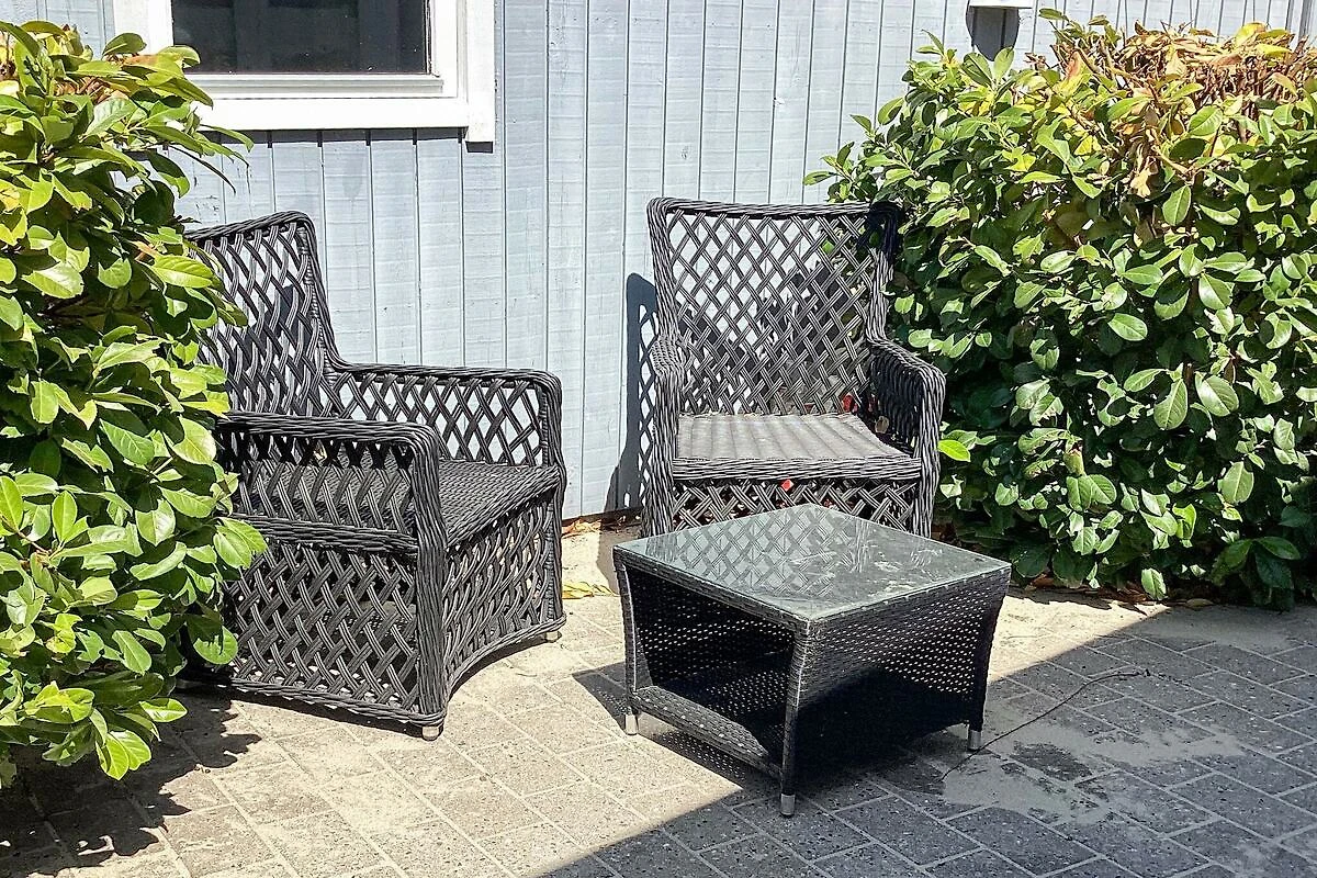 , Cucina separata(stufa(induzione), caffettiera, forno, lavastoviglie, frigo con congelatore, lavatrice), Soggiorno/camera da letto(TV, computer per giochi), Camera da letto(letto matrimoniale), Camera da letto(letto matrimoniale), Camera da letto(letto pieghevole (1 pers.)), Bagno(lavabo, doccia, WC), posto auto coperto, riscaldamento(elettrico), terrazza, mobili da giardino, biliardino, freccette, termopompa aria-aria
