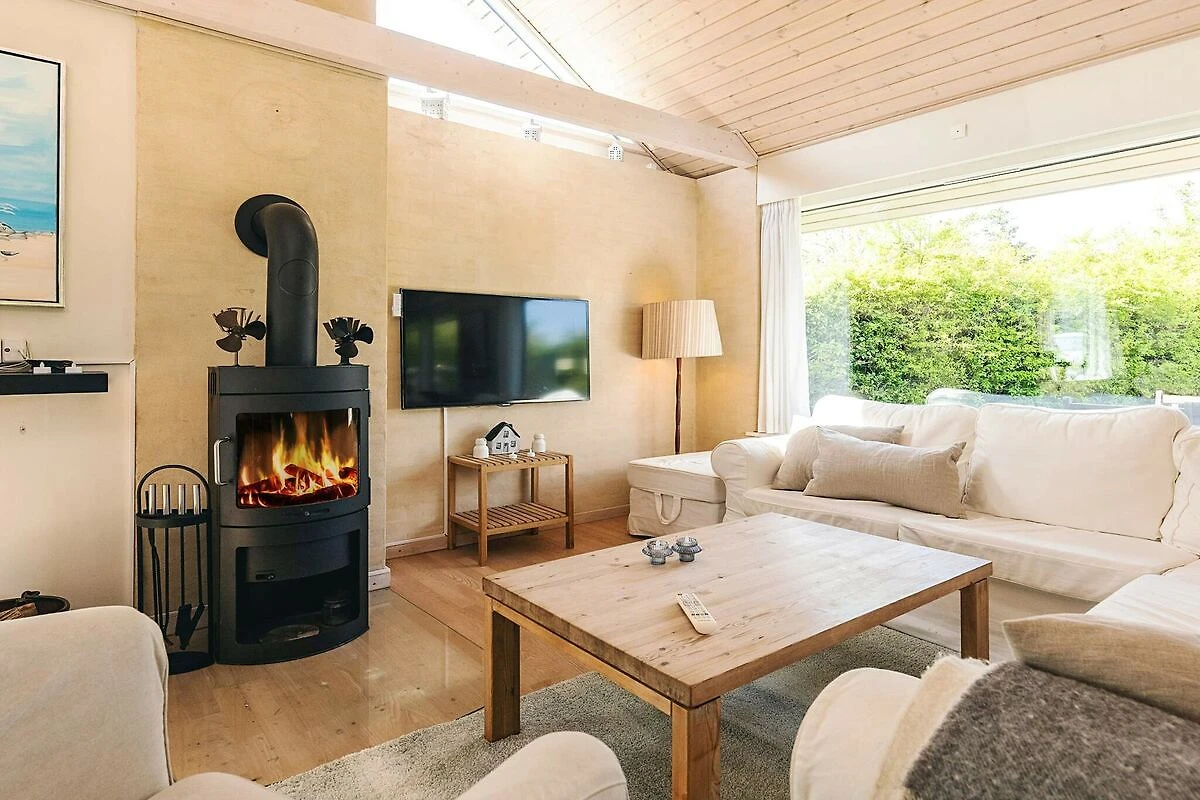 L'accogliente soggiorno è dotato di pompa di calore aria-aria e stufa a legna per le giornate fredde, oltre a connessione internet wireless, TV con canali DR1-DR2-Ramasjang, TV2 e un canale tedesco-norvegese e svedese. È presente anche Chromecast per lo streaming dei propri servizi tramite iPad o dispositivo simile.