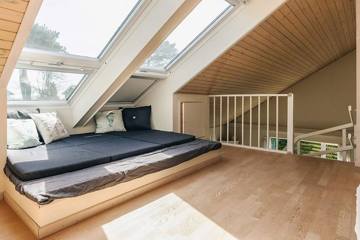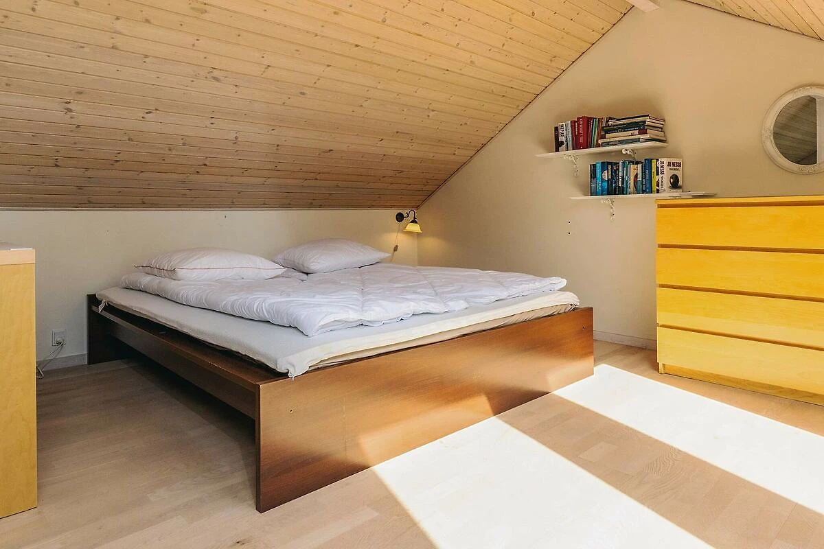 Cucina separata(mobile cucina(2 fuochi), caffettiera, forno, forno a microonde, lavastoviglie, frigo con congelatore, asciugabiancheria, lavatrice), Soggiorno/camera da letto(TV(canali TV danesi), chromecast), Camera da letto(2x letto a castello, TV(canali TV danesi), lettore DVD, chromecast), Bagno(lavabo, doccia, WC), Soppalco aperto(letto matrimoniale), mobile cucina(2 fuochi), asciugabiancheria, riscaldamento(elettrico), terrazza, mobili da giardino, lettini prendisole, giochi per bambini, termopompa aria-aria