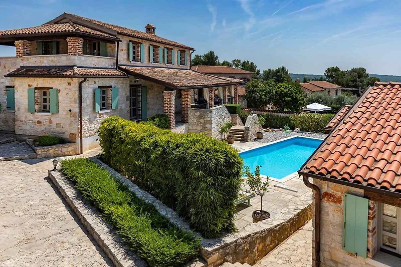 La villa indipendente è arredata moderna e di lusso. La proprietà si trova in una zona residenziale, in periferia. Anche a causa della vista dalla struttura sul giardino e tranquilla, soleggiata e isolata posizione, il domicilio è popolare. Attrezzature ad uso esclusivo: prato per prendere il sole, ombrellone, lettino da sole, possibilità di grigliare, terrazza e mobili da giardino.