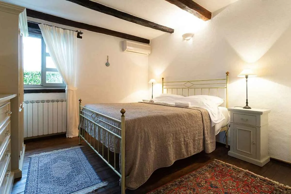 San Lorenzo. La villa si trova in una trama del giardino chiuso, grande 750 mq con prato e alberi, delimitata da una recinzione. L'accesso avviene vicino a una strada secondaria (asfaltata). Parcheggio sulla proprietà.