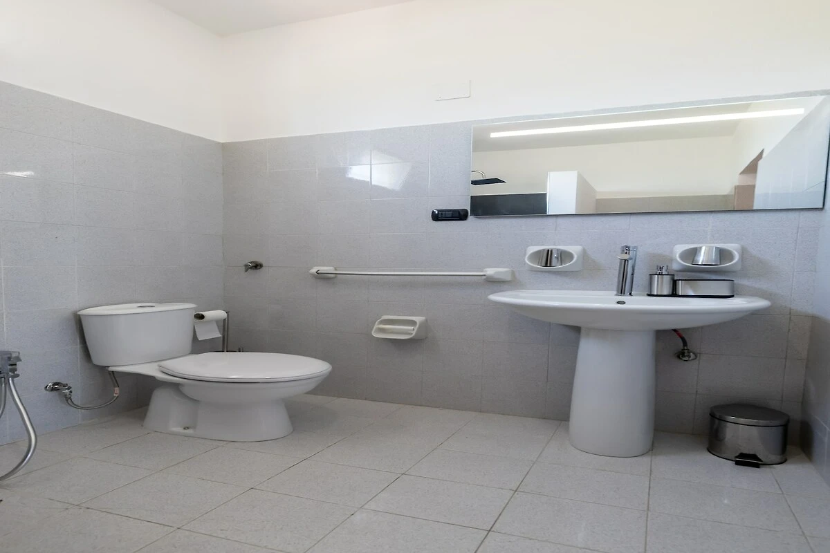 Al 1° piano: (Camera da letto(2x letto singolo, balcone), Camera da letto(2x letto singolo, balcone), Bagno(doccia, lavandino, WC, bidet), aria condizionata, terrazza)