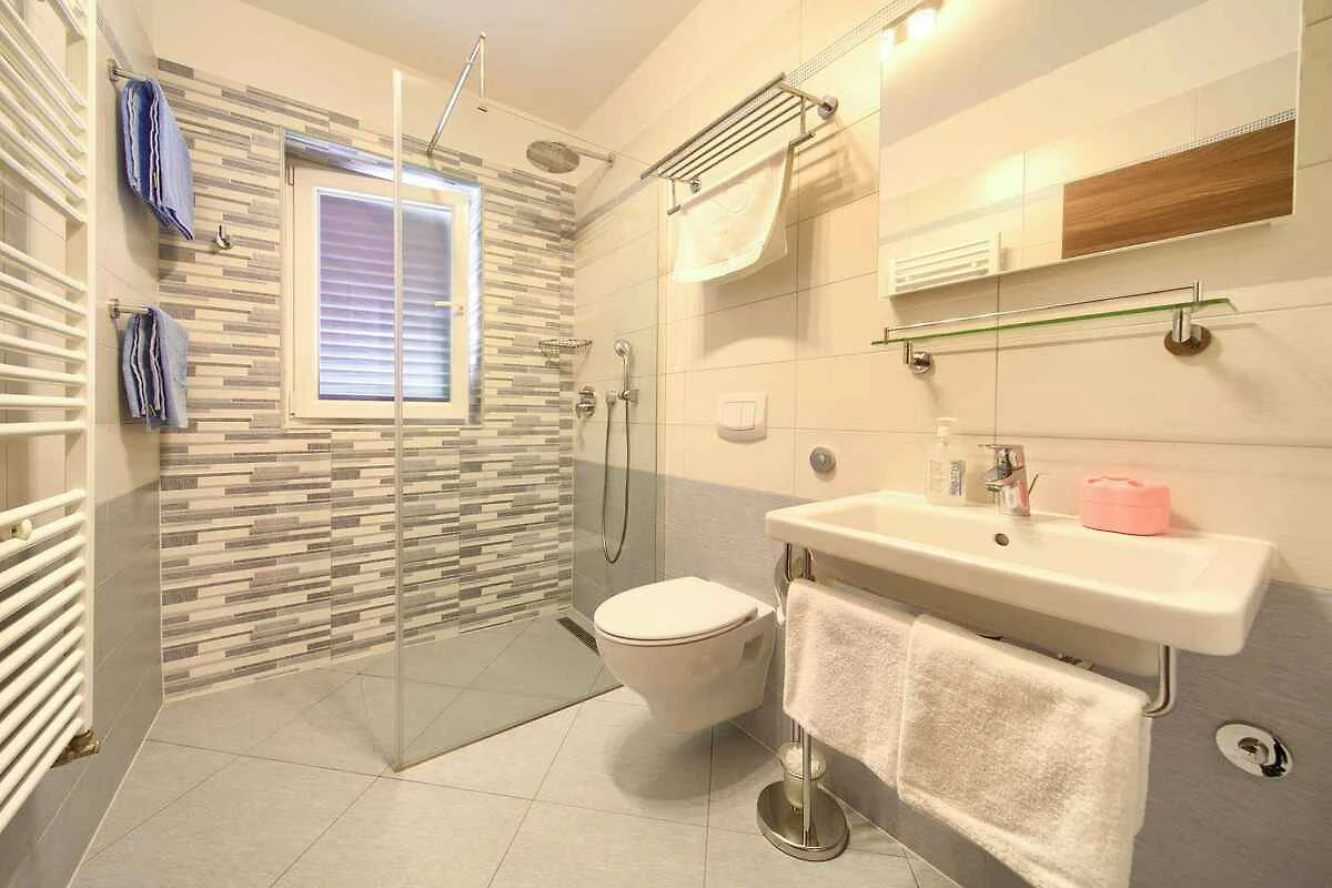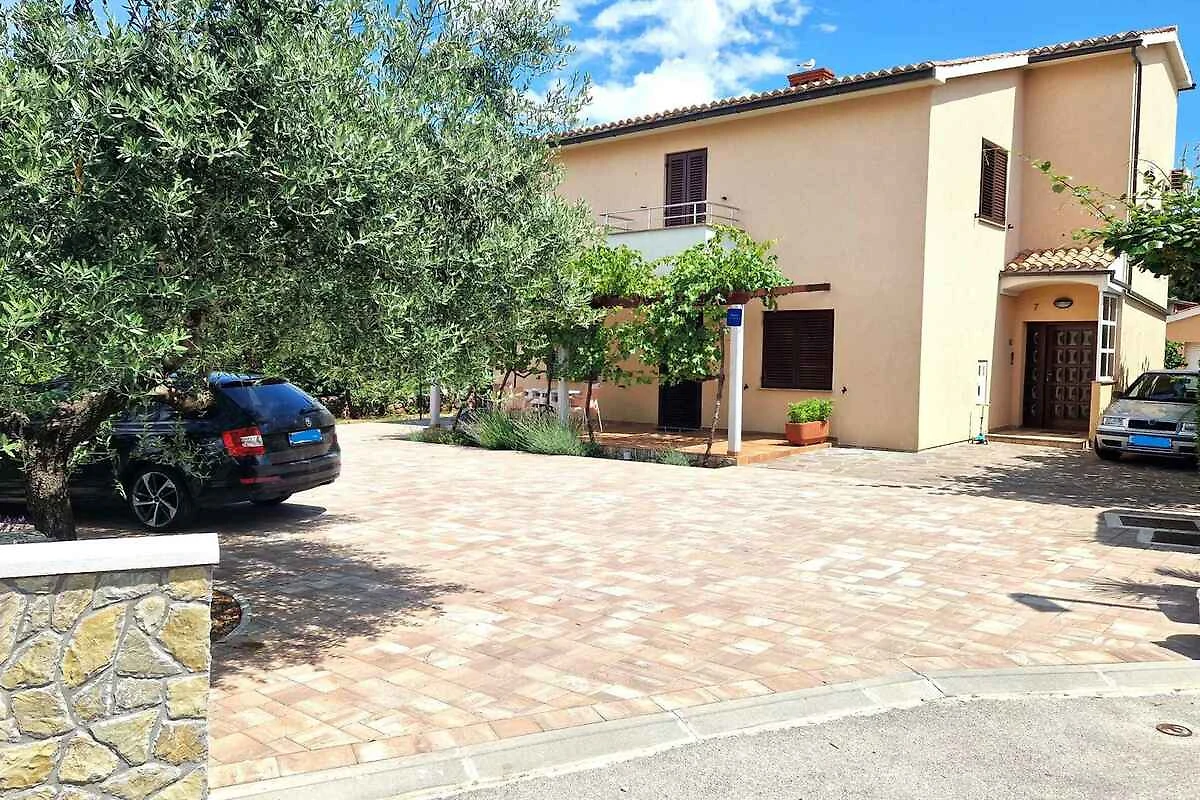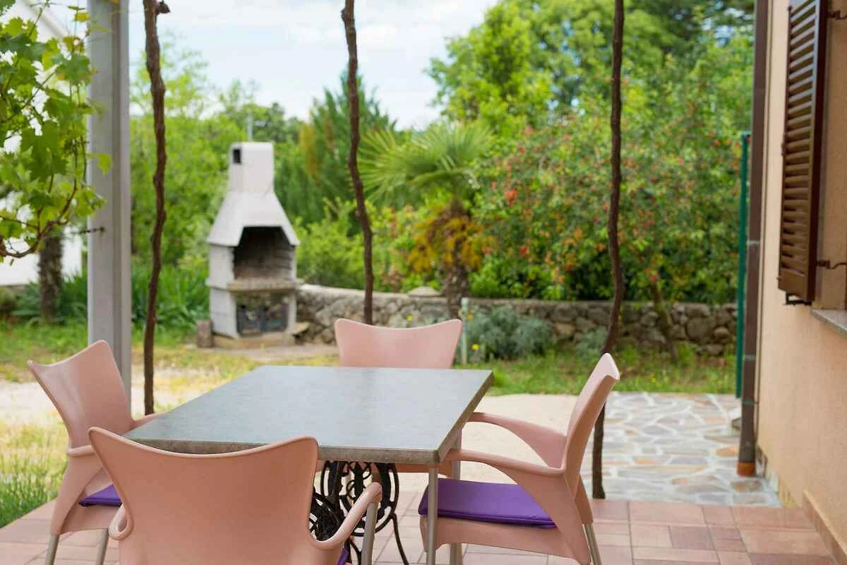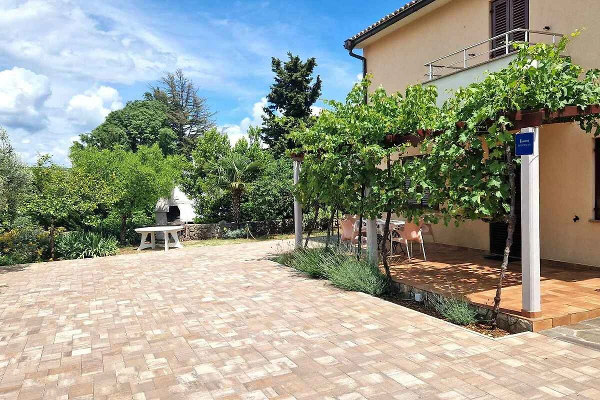 Krk. L'appartamento per le vacanze si trova su un terreno recintato con alberi, delimitato da un muro. L'accesso avviene tramite una strada secondaria (asfaltata). Parcheggio sulla proprietà.