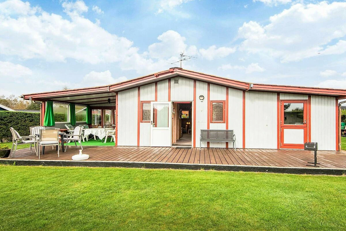 Cucina separata(mobile cucina(elettrico), caffettiera, forno a microonde, lavastoviglie, frigorifero(+ congelatore), congelatore(60-99L), lavabo, WC), Soggiorno/camera da letto(TV(canali TV danesi)), Camera da letto(2x letto singolo), Camera da letto(2x letto singolo), Camera da letto(2x letto a castello), Bagno(asciugabiancheria, lavabo, doccia, WC, lavatrice), riscaldamento(elettrico), giardino, mobili da giardino, termopompa aria-aria