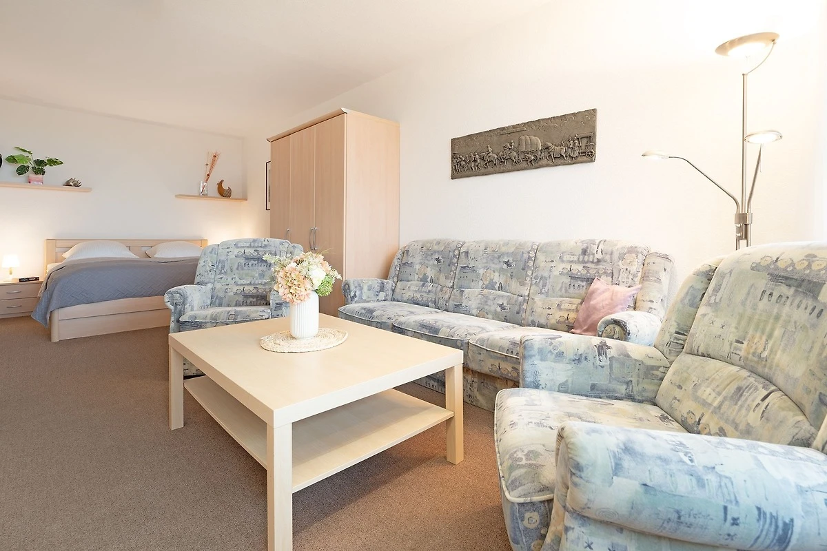 Die Wohnung ist klein, aber vollkommen ausreichend für 4 Personen. Es ist alles da, was man so braucht. Wir haben uns sehr wohl gefühlt. Die Küche ist voll ausgestattet. Wg der Corona-Massnahmen waren Schwimmbad und Tischtennis-Raum leider geschlossen. Das Internet hat zuerst nicht funktioniert, zusammen mit dem netten Team von Kraushaar-FeWo haben wir aber schnell eine gute Lösung gefunden. Wir hatten einen tollen Urlaub und können die Wohnung nur empfehlen.