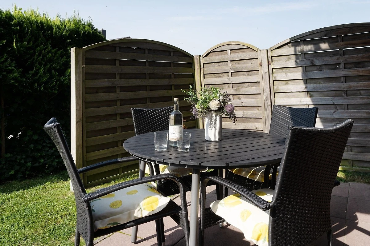 Die Pflasterung der Terrasse ist SEHR uneben, Tisch und Stühle wackeln stark! Die Halterung vom Duschkopf ist defekt! Anmerkung: Im Hochsommer muss ein Sonnenschutz auf der Terrasse (Markise, Sonnenschirm) vorhanden sein! Ansonsten: ALLES TOP !!; Danke