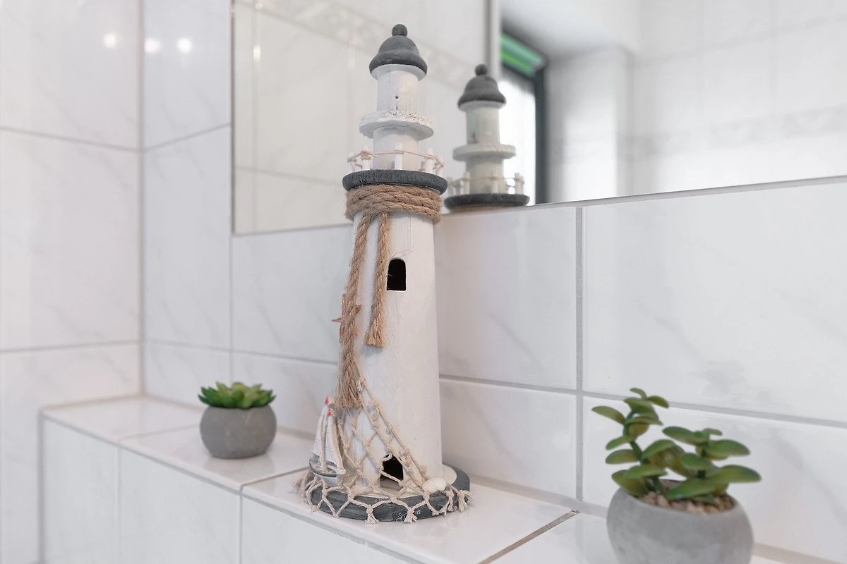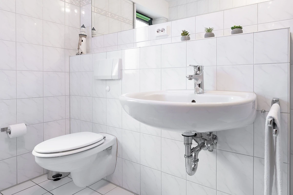Der erste Eindruck war super. Großzügiges Bad. Helles Wohnzimmer. Kleine schicke Terrasse,die direkt an einer befahrenen Straße gelegen war ,was und aber nicht sonderlich gestört hat. Die Lage der Wohnung war auch bestens. Nicht weit bis zum Bäcker oder Lebensmittelgeschäft. Strand ca 10 Gehminuten entfernt. Aber einige Mängel fanden wir dann doch die nicht hätten sein dürfen für eine Wohnung die 1000? kostet für 10 Tage. Beim beziehen der Betten fand ich eine Socke die nicht zu uns gehörte. Der Mülleimer im Bad war defekt, ließ sich nicht mehr per Fusstaste öffnen. Bei der Wanduhr und Fernbedienung waren die Batterien leer. Kaffemaschine und Wasserkocher musste ich erst einmal Grundreinigen.