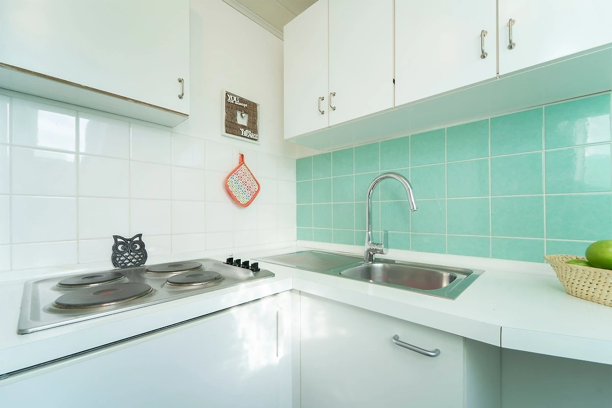 Wir kamen in eine schöne Saubere Wohnung. Das Bad ist neu , es fehlten nur Handtuchhalter oder Haken.Es gab nur einen. Das Schlafzimmer ist gross, und das Bett ist schön bis auf die Matratzen, die etwas durchgelegen sind. In der Küche, die etwas älter ist, hat uns nur der Wasserkocher, der verkauft ist ,etwas gestört. Im Wohnzimmer hat uns nur eine größere Couch gefehlt.