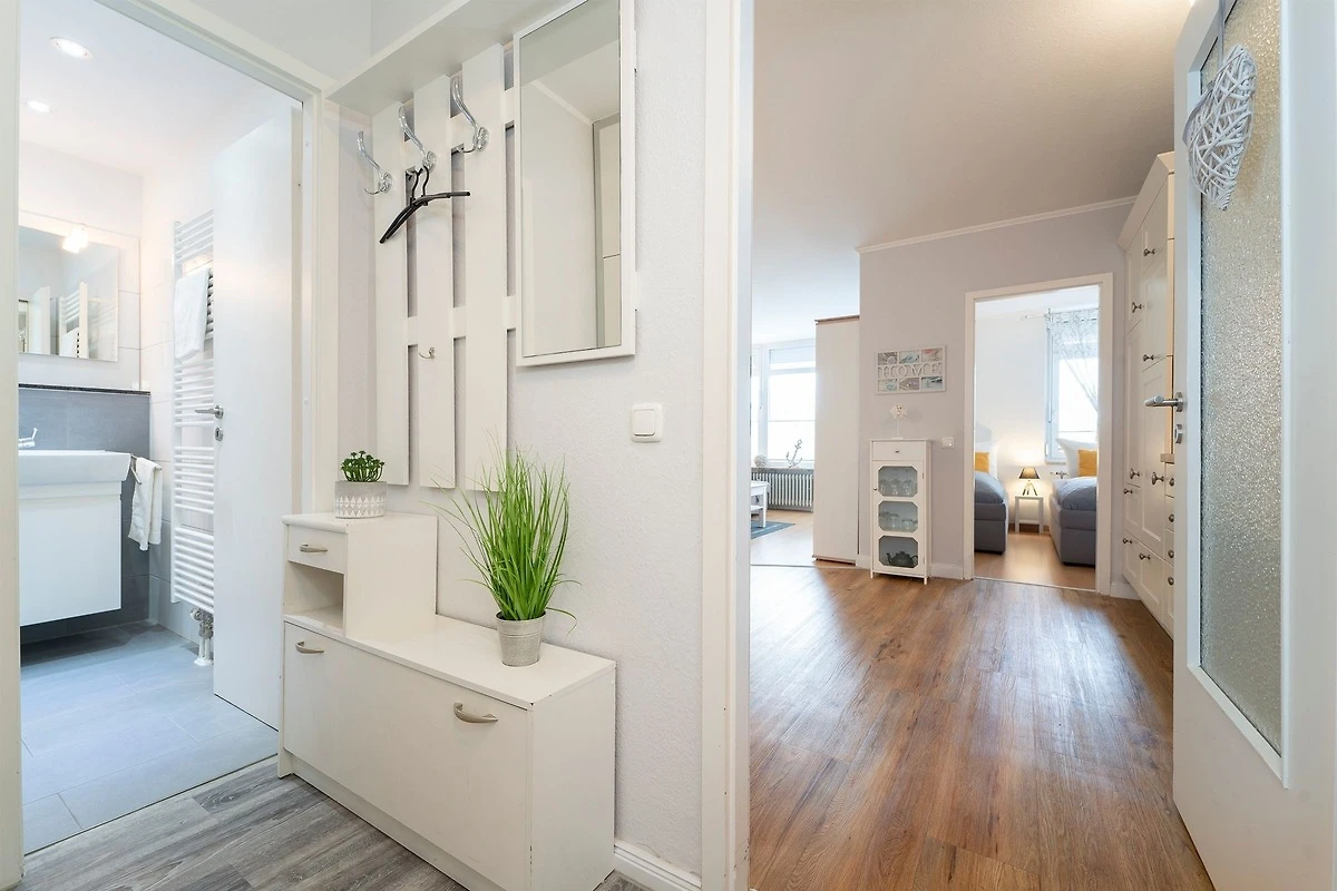 Zum Strand nah gelegene Wohnung, Einkaufsmöglichkeiten in der Nähe. Die Wohnung ist barrierefrei erreichbar.