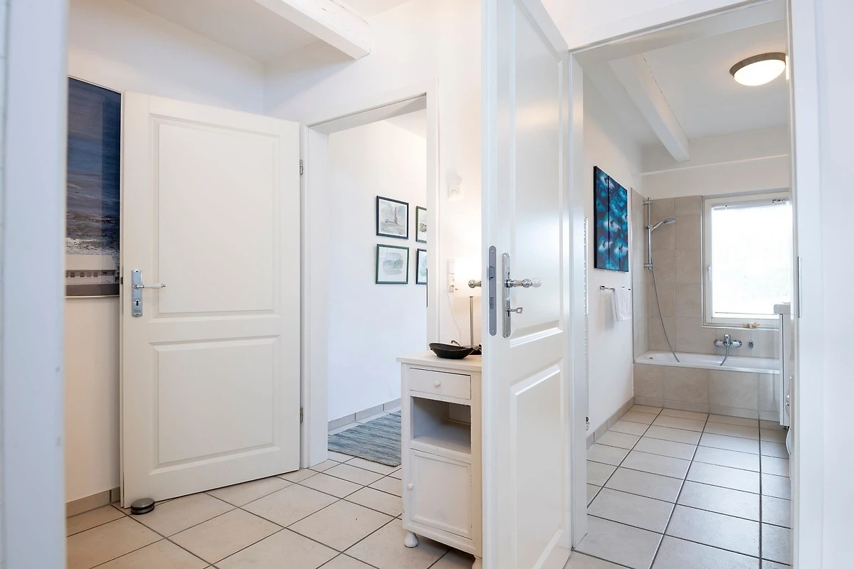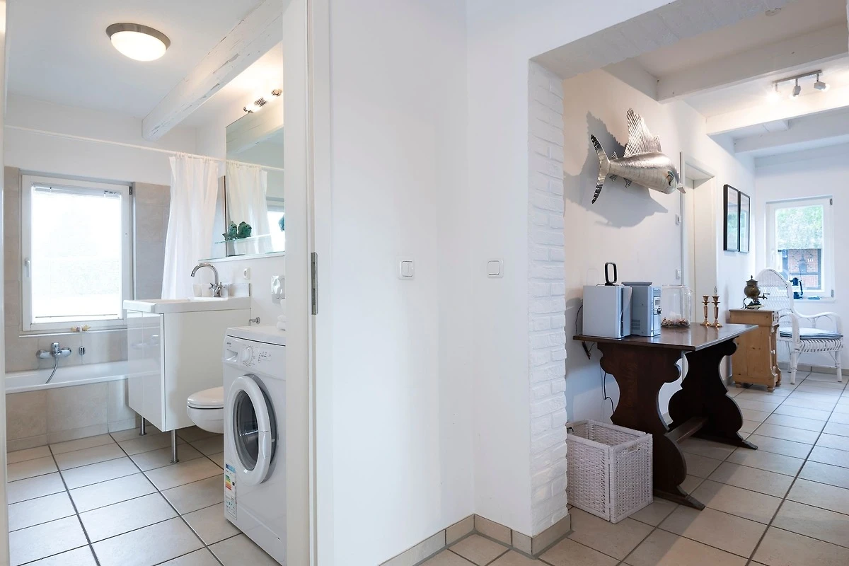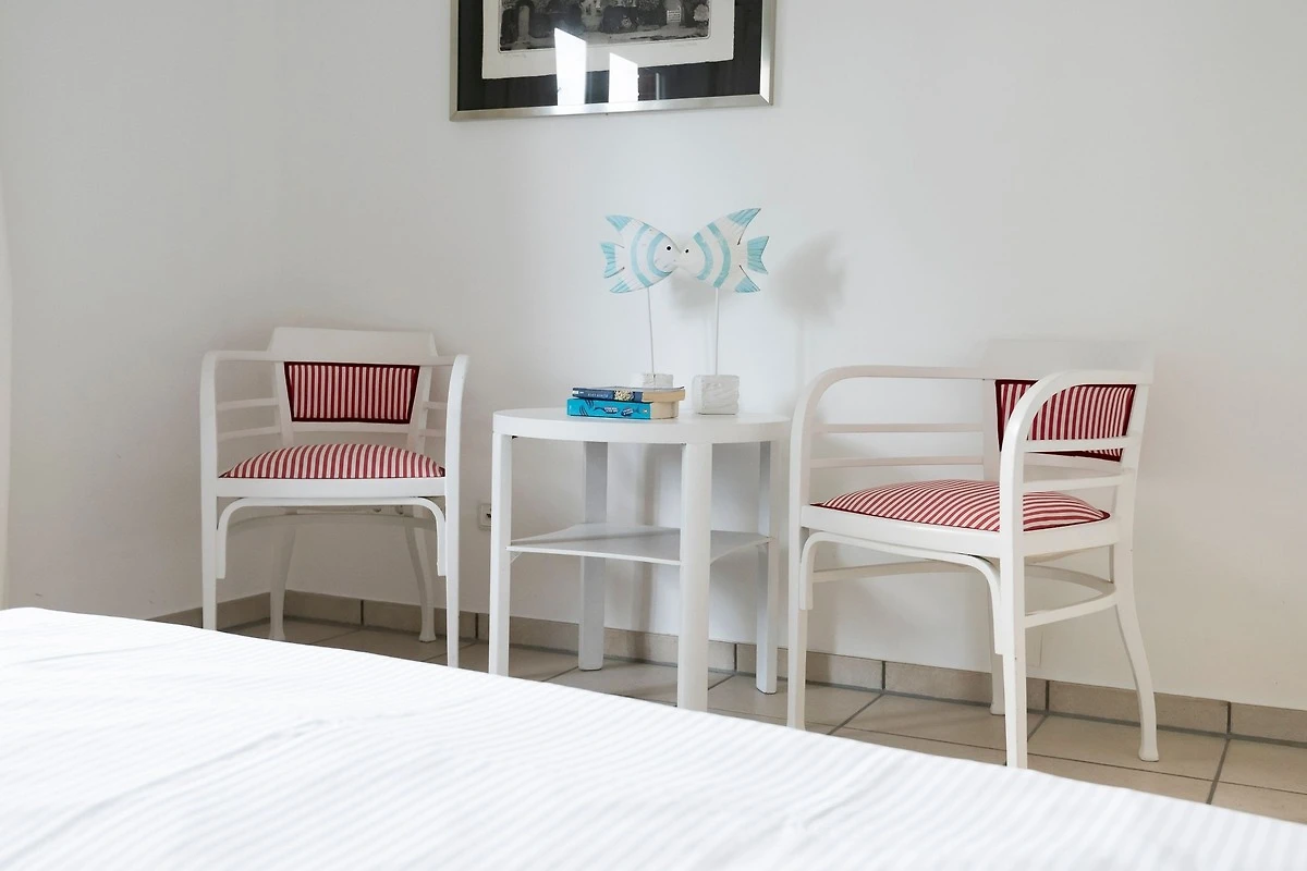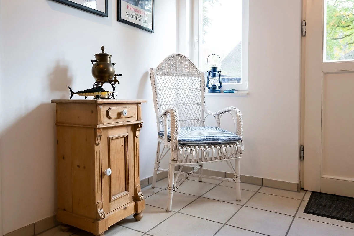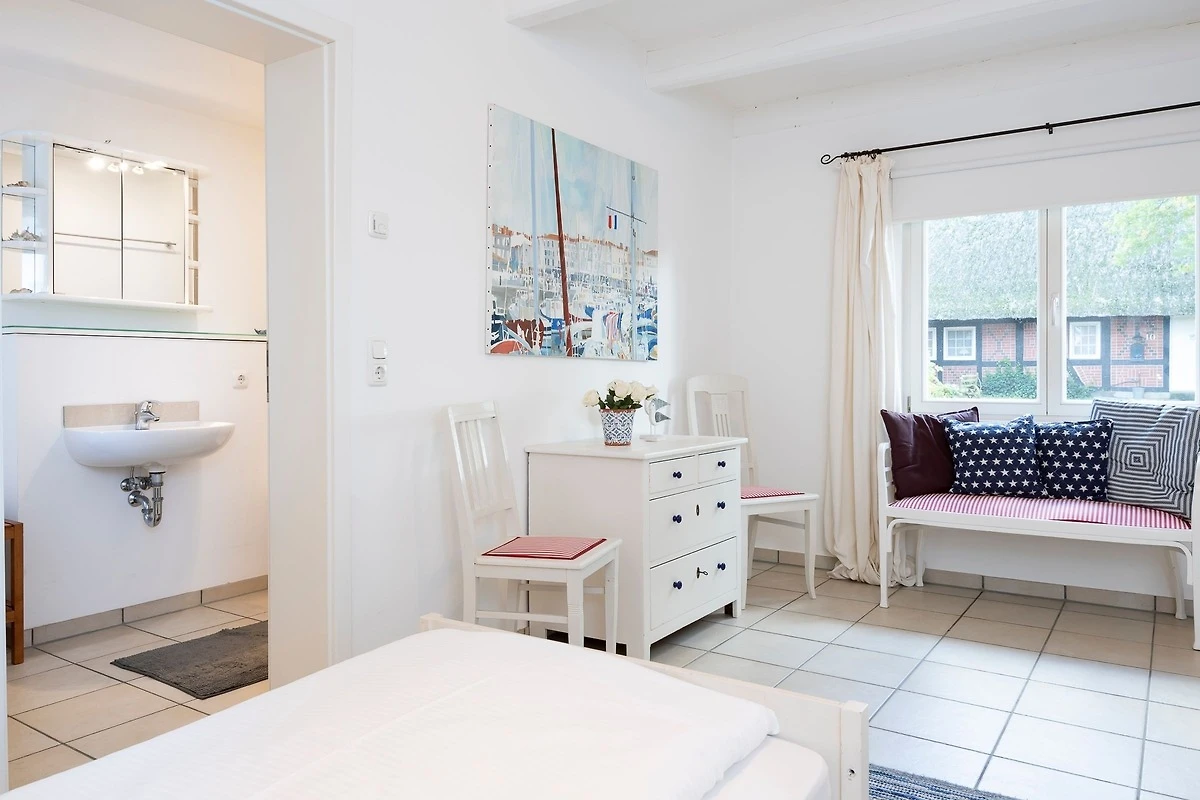 Die Wohnung liegt wohltuend ruhig und ländlich idyllisch. Die Einrichtung ist auf den ersten Blick maritim gemütlich, auf den zweiten Blick wirken manche Dinge leicht vernachlässigt. Das ist schade. Die Kúchenausstattung ist zusammengewürfelt. Teekanne hatten wir selbst dabei.