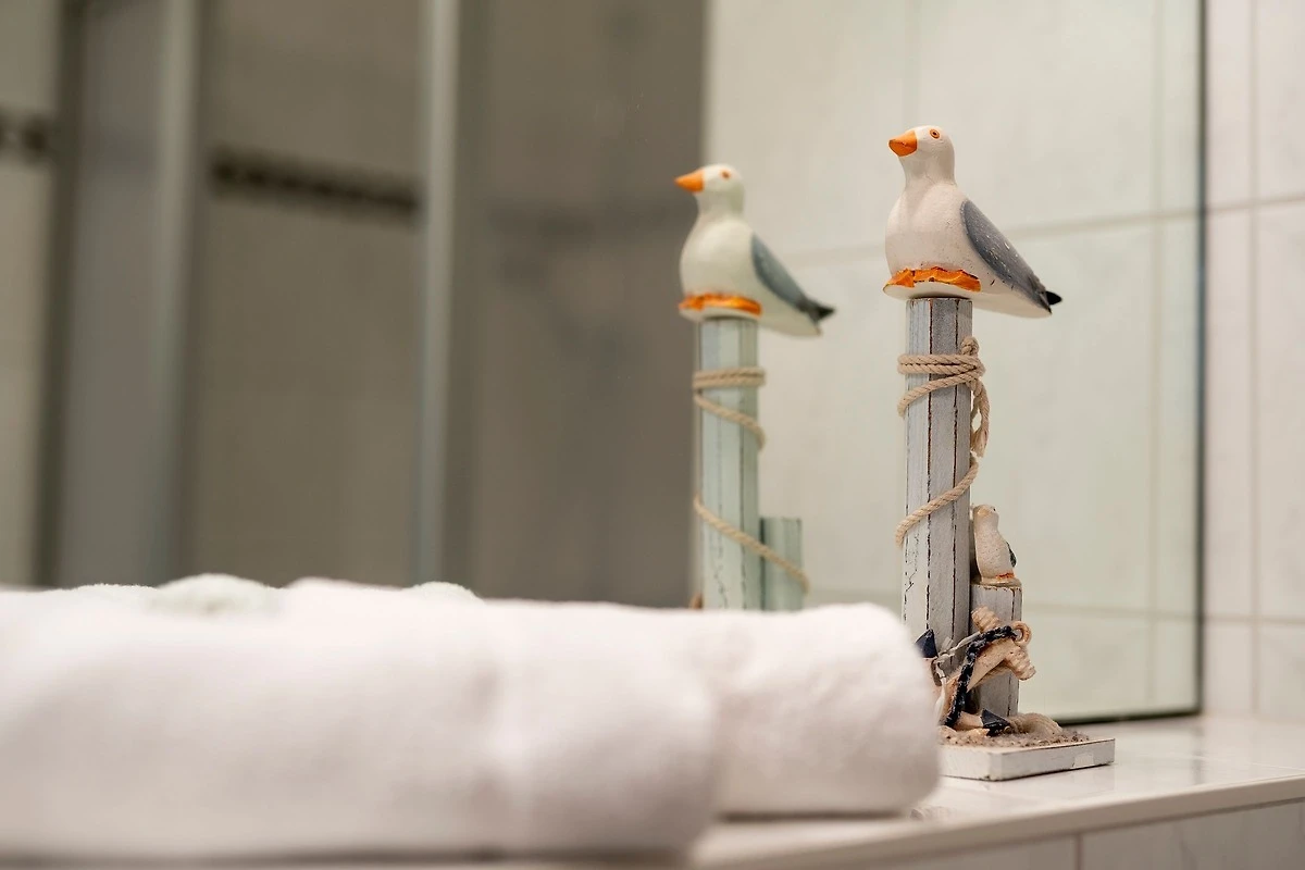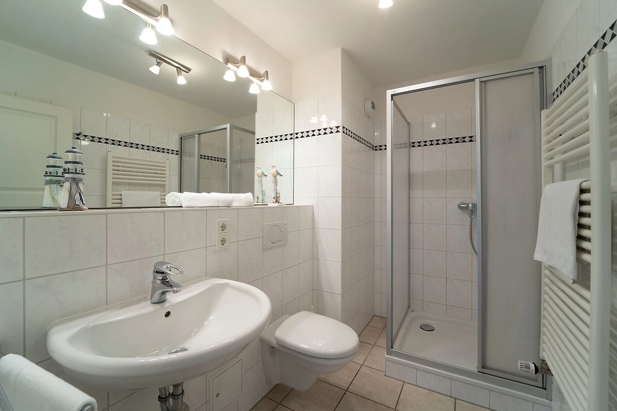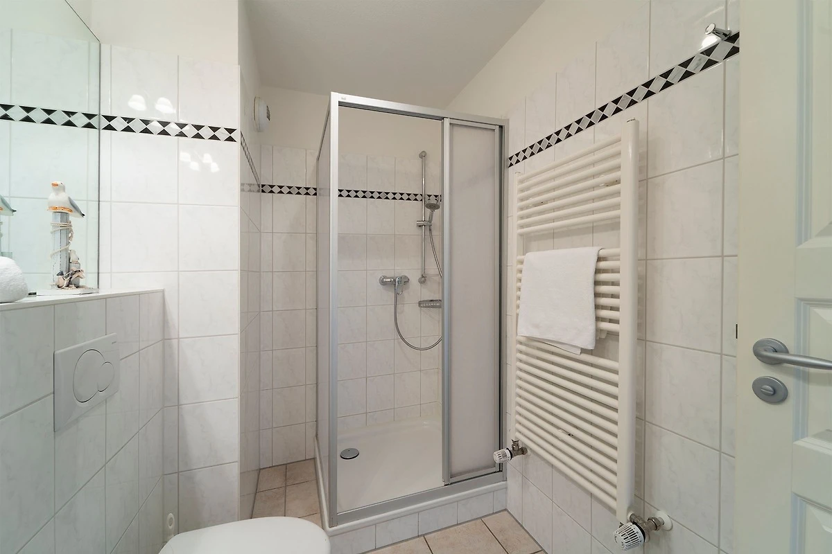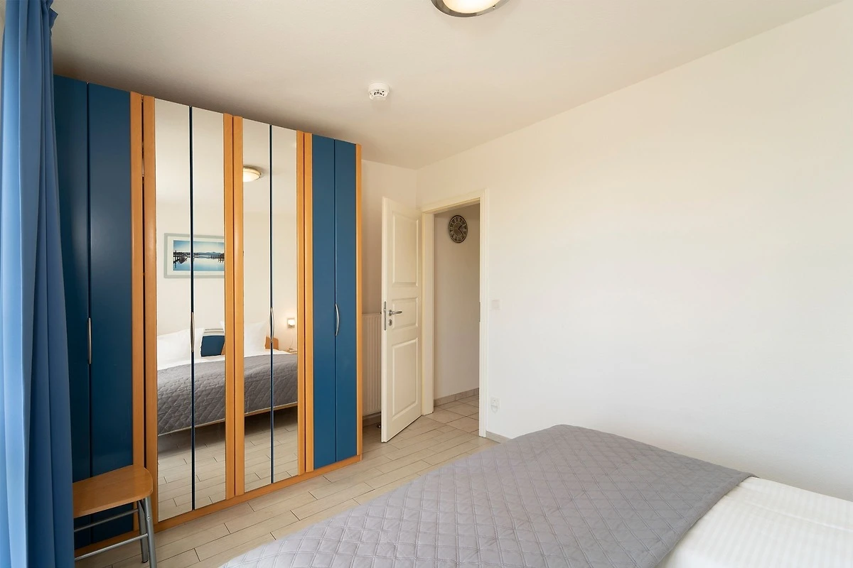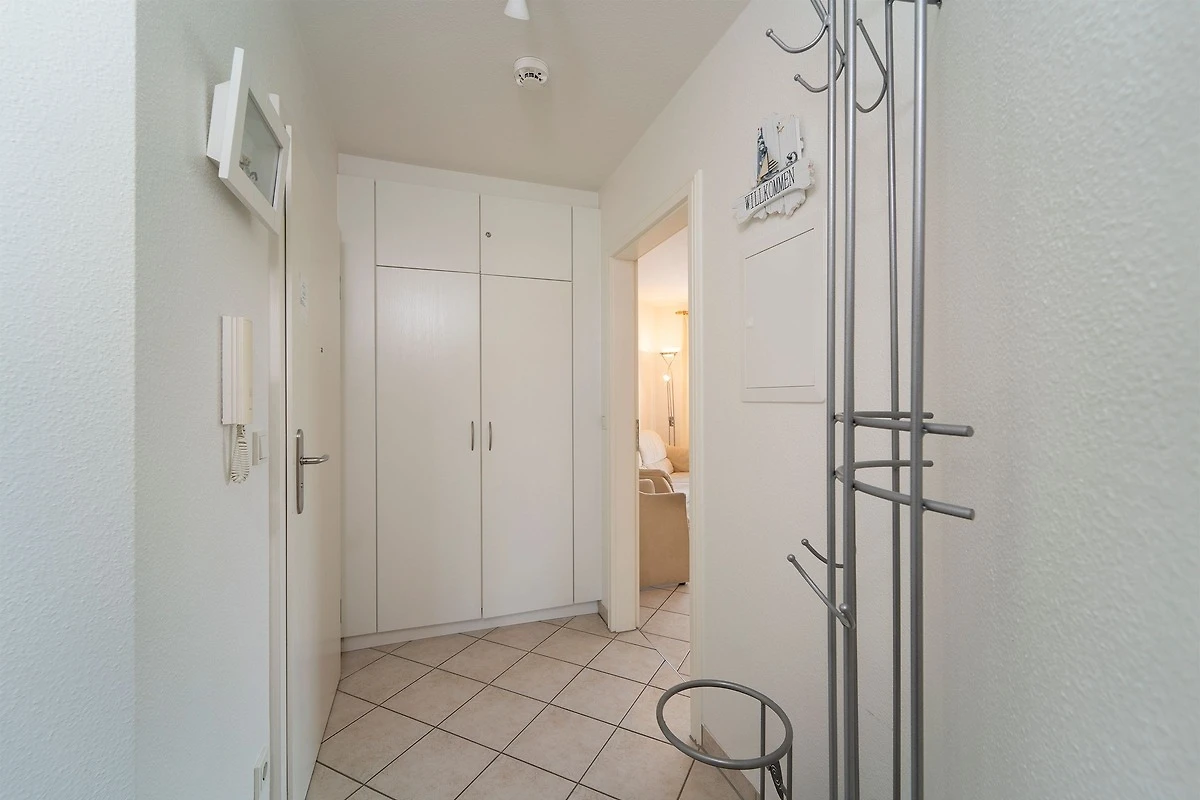 Von dieser Wohnung aus gelangt man schnell überall hin. Ob zum Strand, Bäcker, Promenade, Einkaufsmöglichkeiten, man kann das Auto einfach auf dem Parkplatz hinter dem Haus stehen lassen und alles zu Fuß erreichen. Negativ, es gibt keinen Rollladen im Schlafzimmer und im Bad ist Lüftung defekt.