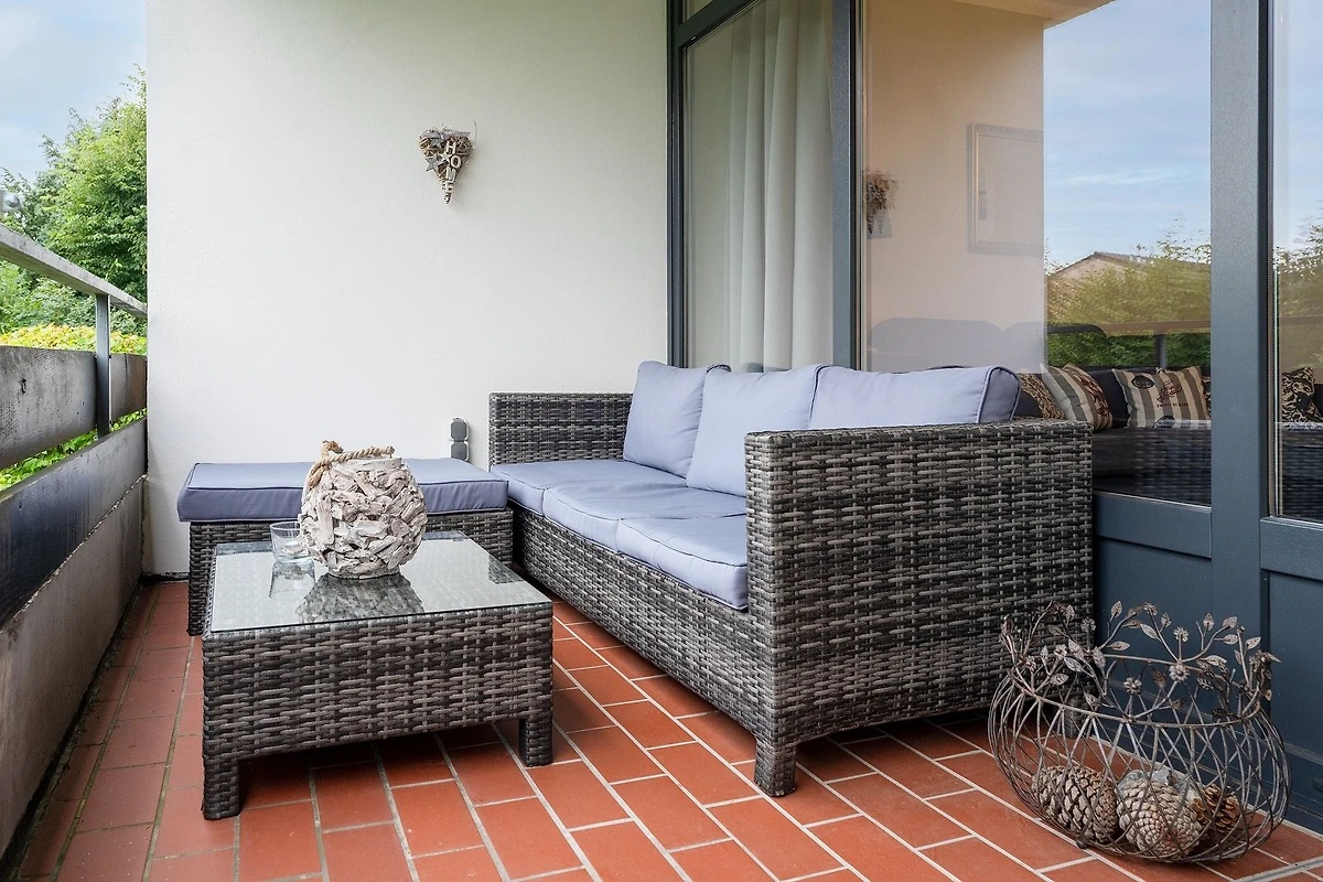 Balkonmöbel sind sehr niedrig, entsprechen leider nicht mehr denen auf den Fotos.