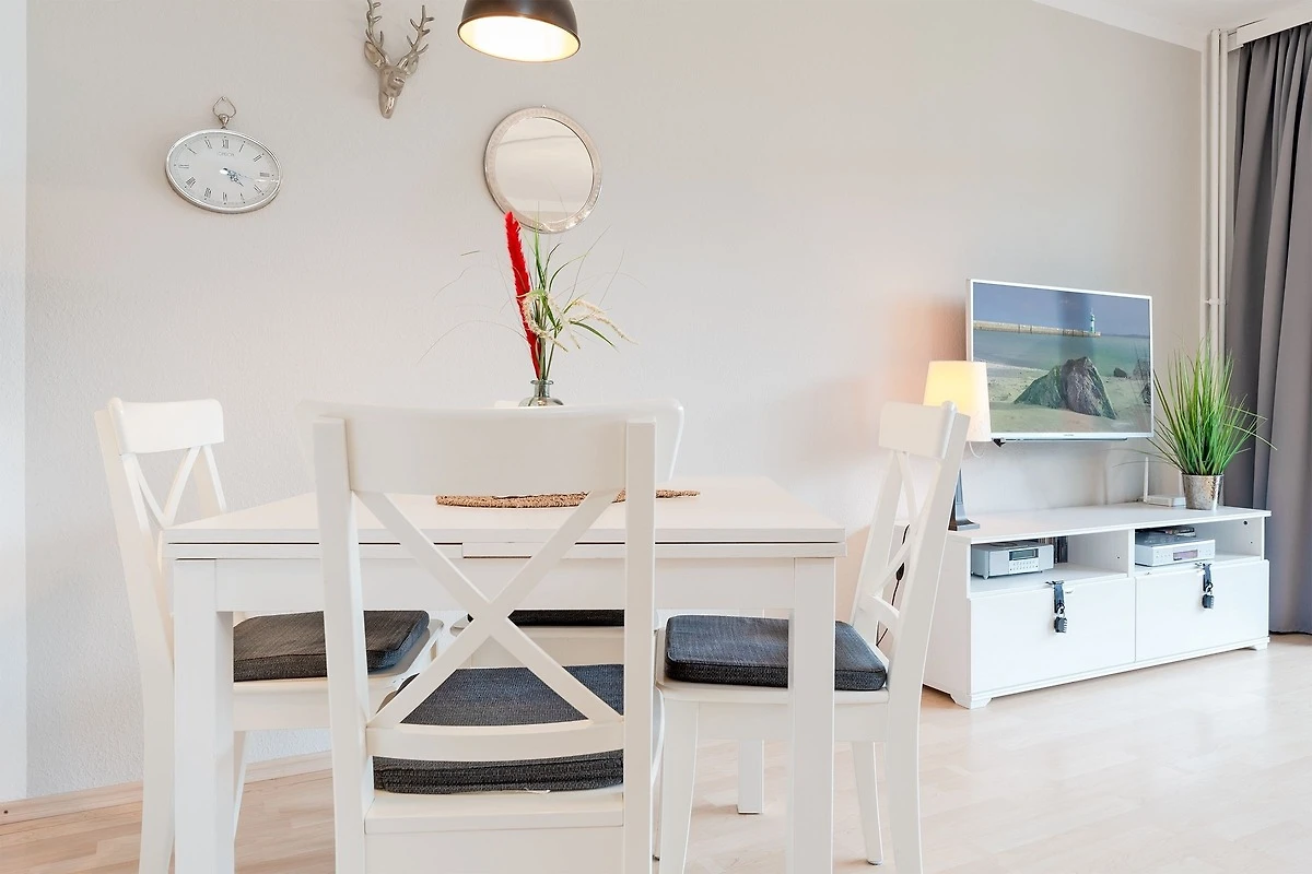 Die Ausstattung der Wohnung ist sehr gut, es ist alles da was man braucht. Außerdem ist die Wohnung sehr gemütlich und geschmackvoll eingerichtet. Die Lage ist auch Top, man hat seine Ruhe ist aber trotzdem in weniger als 5 Gehminuten beim Strand.