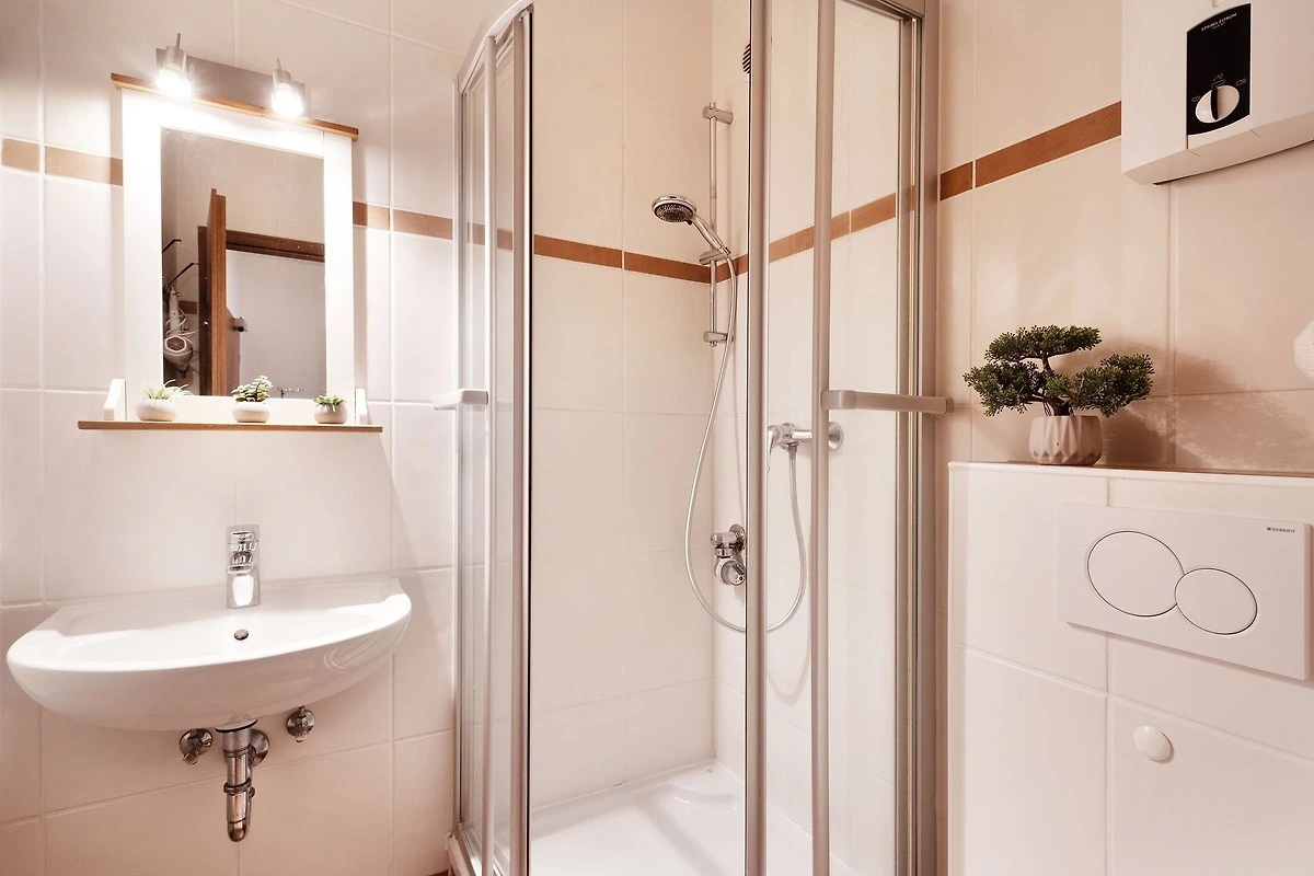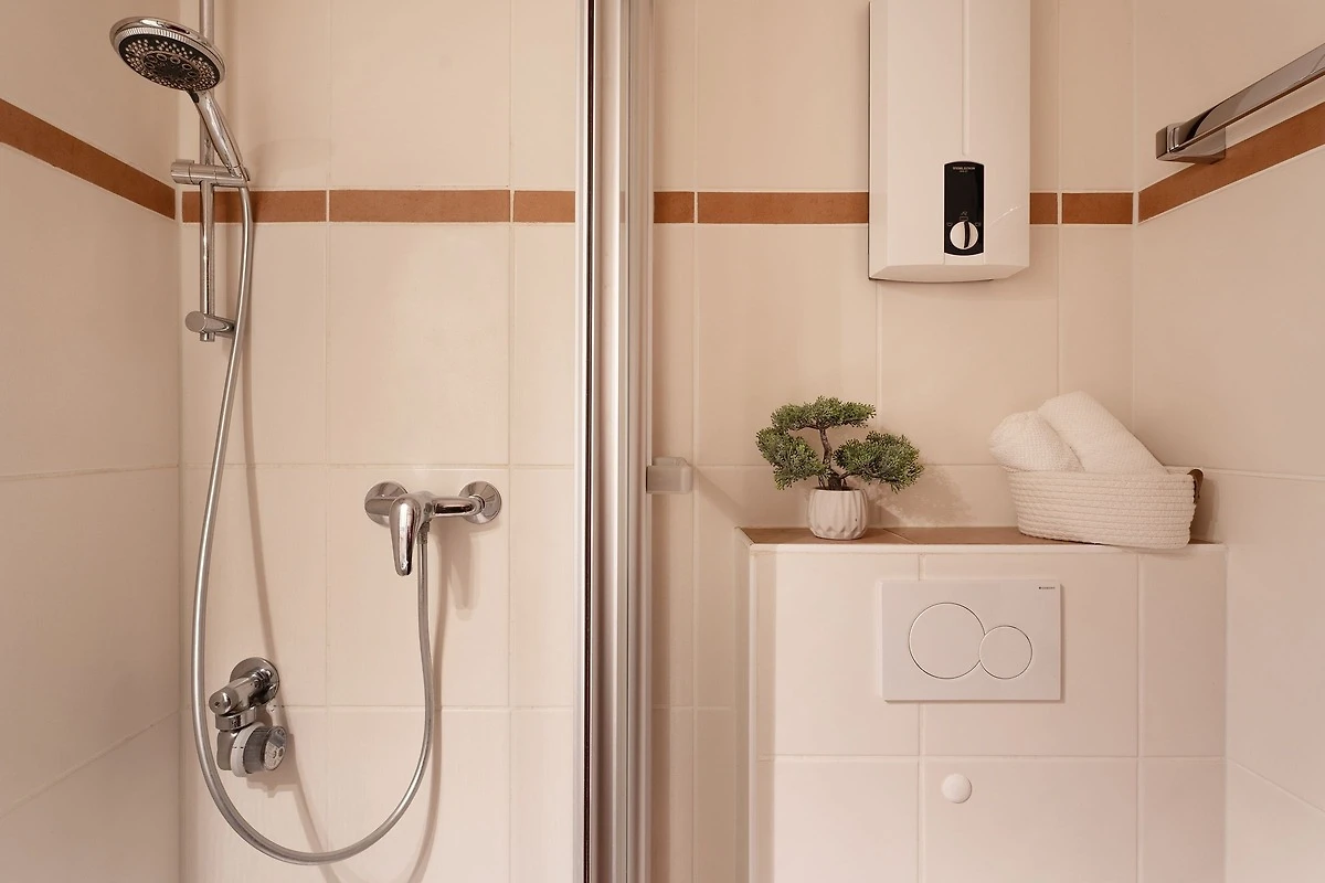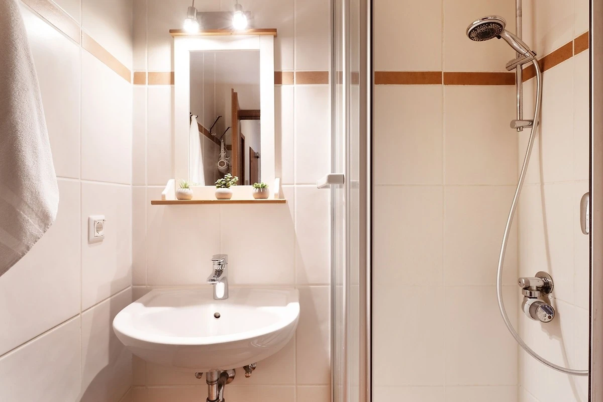Leider ist die Dusche entschieden zu klein, für ältere Menschen oder große Menschen eine Katastrophe