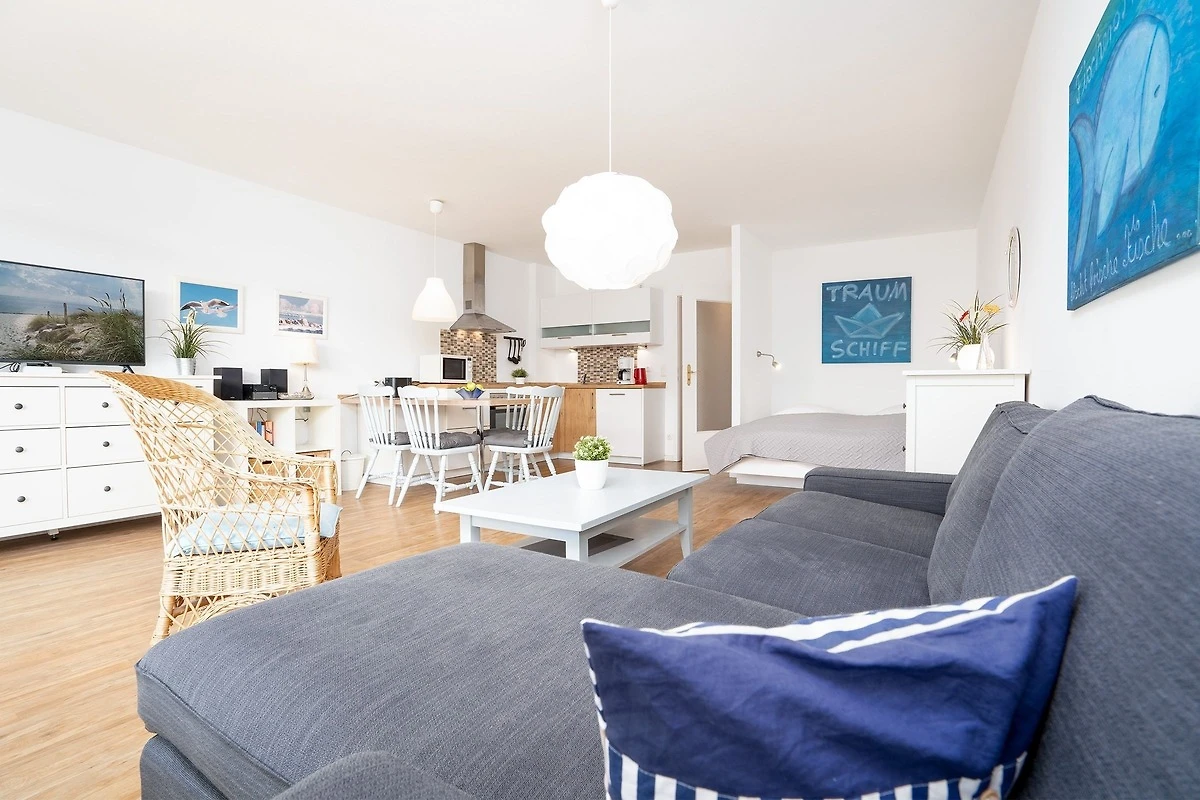 Auf den ersten Blick schöne Wohnung - jedoch mit diversen kleinen Mängeln und Macken! Im Wohnzimmer steht ein unbequemes Doppelbett mit sehr harten Matratzen. An der großen Fensterfront gibt es nur weiße Vorhänge. Ab Sonnenaufgang ist es taghell. An Ausschlafen ist nicht zu denken! Kein Eisfach.