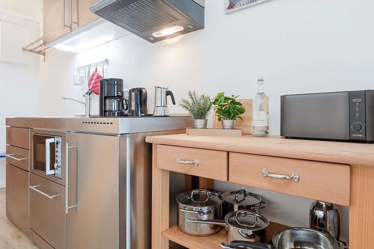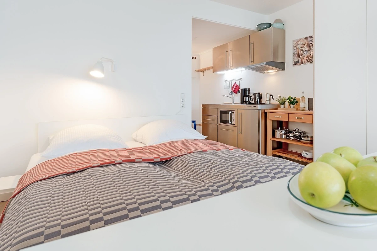 Wunderschöne kleine Ferienwohnung in fantastischer Lage. Sehr sauber und geschmackvoll. Matratzen etwas sehr fest, aber das ist ja Geschmackssache. Sitzkissen für die Balkonmöbel haben gefehlt und damit den Komfort etwas eingeschränkt. Aber das ist Jammern auf hohem Niveau. Wir waren begeistert und werden bestimmt wieder kommen. Kleiner Hinweis noch...Es wäre hilfreich gewesen, ein paar Erklärungen zu erhalten, bezüglich des Umgangs mit dem Schlüssel beim ersten Check in. Die Erklärungen hierzu bekamen wir von einem freundlichen Pärchen, als wir nicht in den Gästebereich des Hotels kamen. Die Rezeption bzw. der Empfang war zu diesem Zeitpunkt nicht besetzt. Das war leider etwas ärgerlich und hätte mit ein oder zwei Sätzen bei Abholung des Schlüssel erklärt werden können.