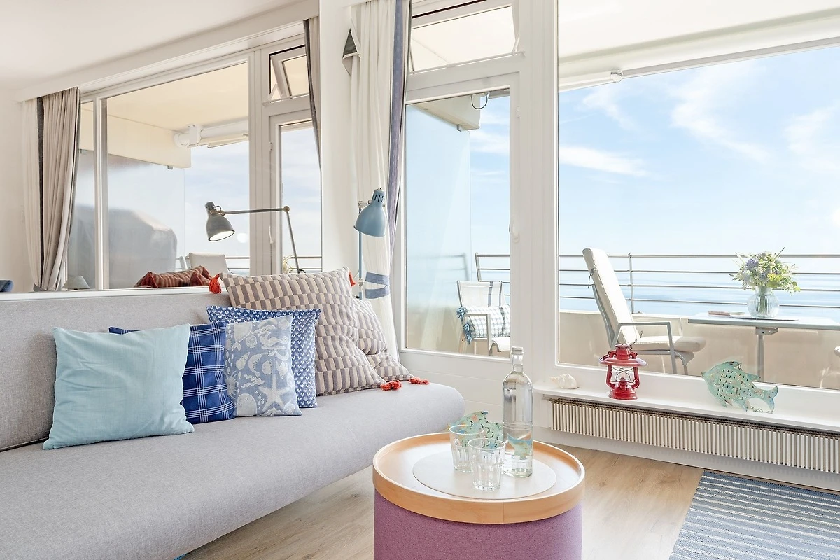 Behaglich und modern eingerichtet, zweckmäßig. Herausragend war der herrliche Blick über das Meer .