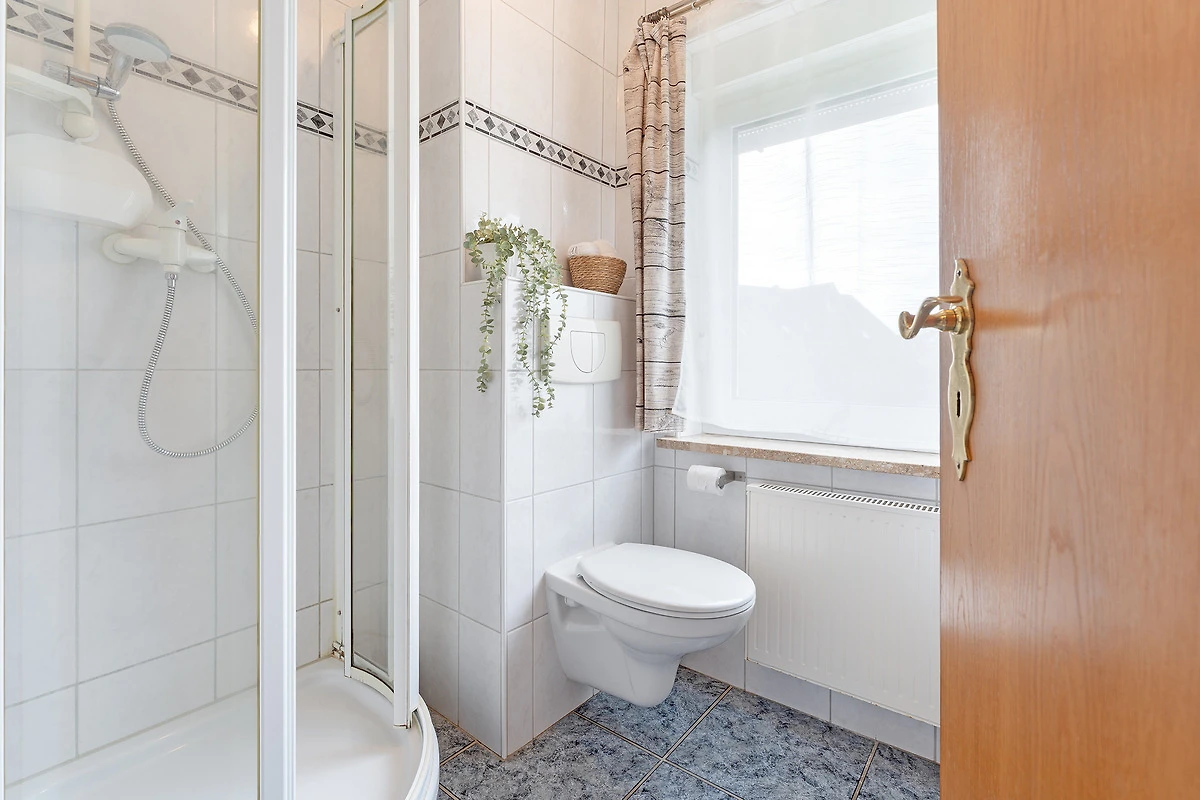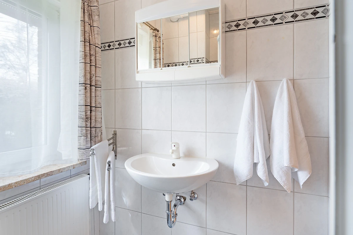Leider kann man hier keine Bilder hochladen. Bewertung des Duschbereichs und der Dusche (Altbestand): Starke schwarze Rückstände an den Außenseiten der Duschtüren vorhanden. Waschbecken: Sehr alt und hängt zu tief. Spiegelschrank: Aus einfachem Kunststoff, zu klein und ebenfalls veraltet. Insektenschutz: Leider sind keine Fliegengitter vorhanden. An den Decken sind alte Wasserflecken, die lediglich überstrichen wurden. Flur: Es riecht stark modrig und unangenehm.