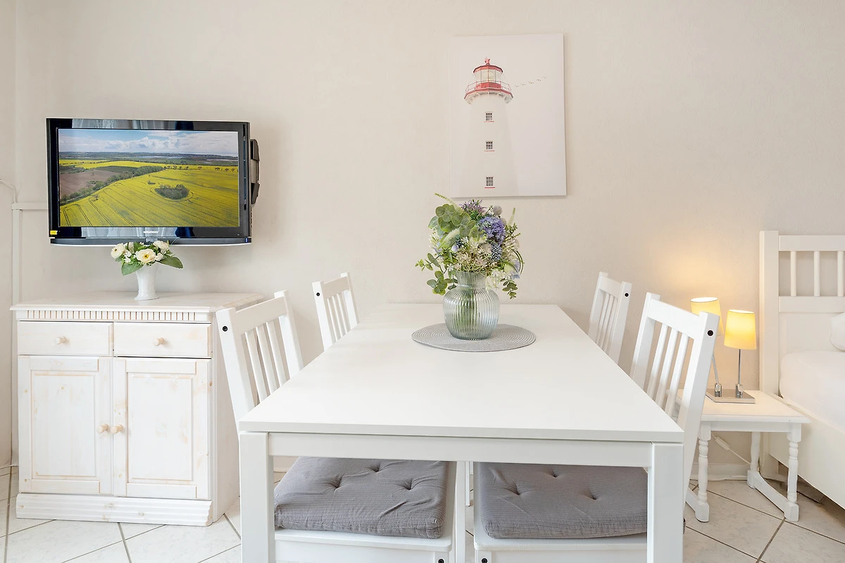 Wir waren 10 Tage in der FeWo, 2 Erwachsene und 2 kleine Kinder. Es war sauber und der kleine Raum war gemütlich eingerichtet. Die Kommunikation mit dem Vermieter war per Mail reibungslos. Wir haben uns wohl gefühlt. Den Garten haben wir gerne genutzt, auch um mit den anderen Feriengästen zu ...,quatschen und die Kinder haben miteinander gespielt. Zum Südstrand oder nach Burg kommt man gut zu Fuß. Ein Backofen und eine Waschmaschine hätte den Aufenthalt als Familie perfekt gemacht, aber wir wussten ja vorher, dass dies dort nicht gegeben war. Insgesamt war es toll dort und wir wären gerne ,noch länger geblieben!