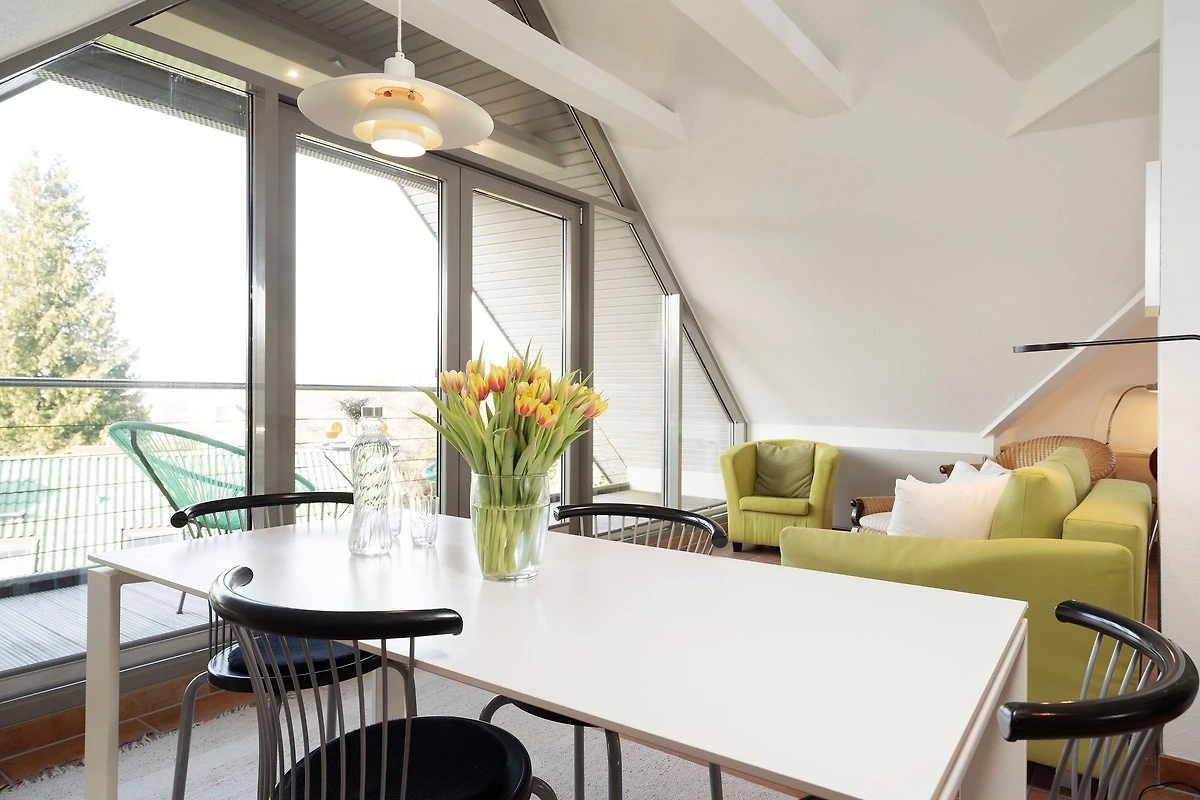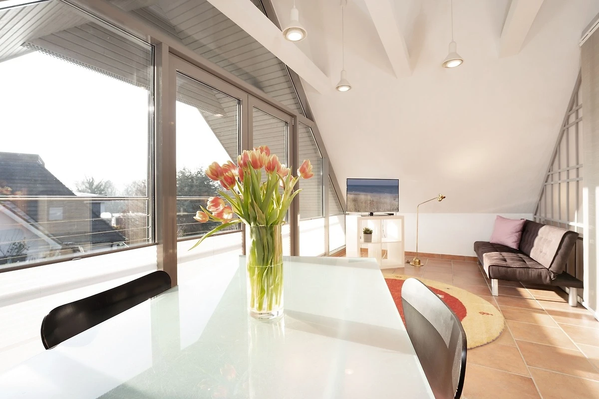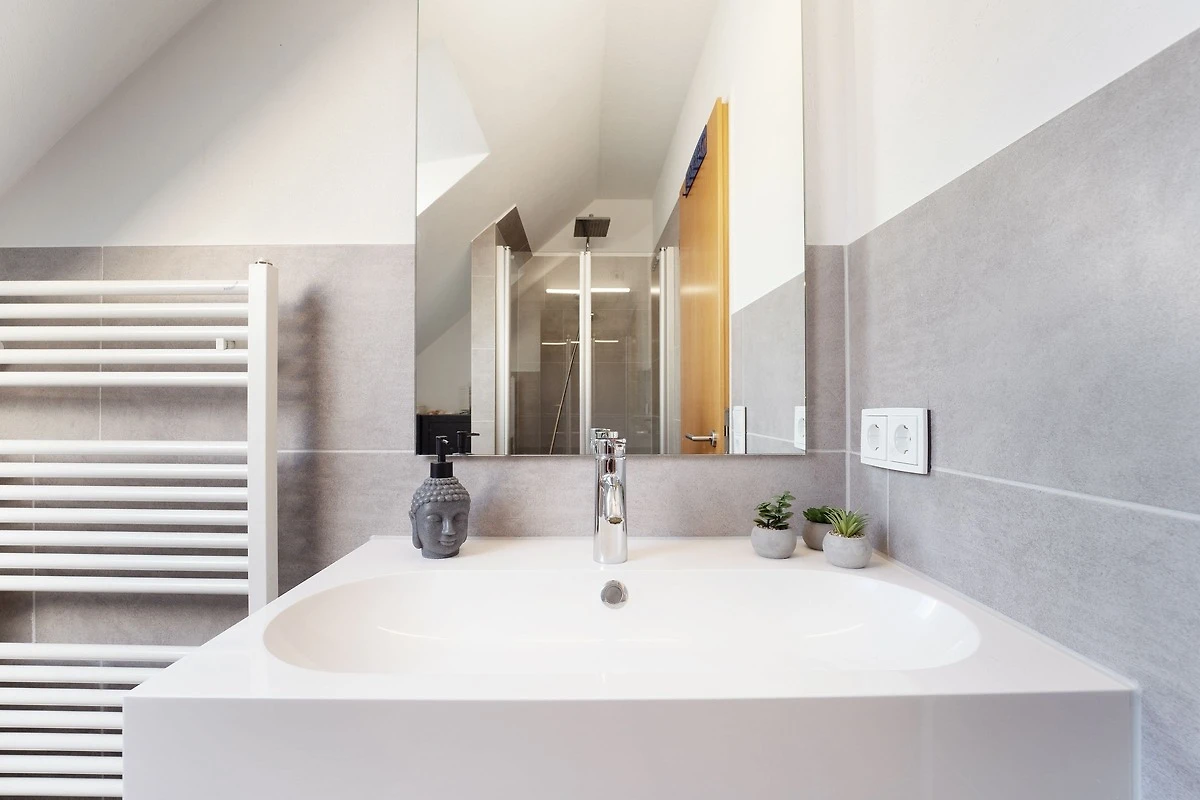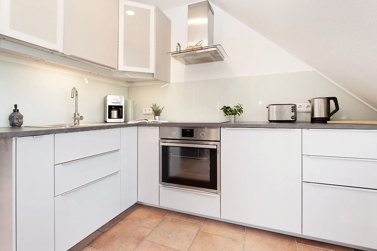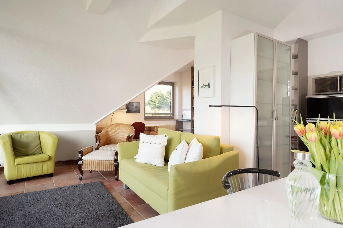 È molto fastidioso che la consegna delle chiavi debba avvenire in un luogo diverso da quello dell'oggetto prenotato. L'appartamento stesso è molto bello e adatto per due persone. Purtroppo si trova anche qui il solito assortimento di piatti e bicchieri. Le E-Bike non possono essere sistemate, poiché, a differenza della descrizione, non ci sono due gradini ma tre scale da affrontare. Questo non è possibile con le E-Bike. Un grande difetto per tutti i "dormienti notturni": non c'è modo di oscurare le camere da letto.
