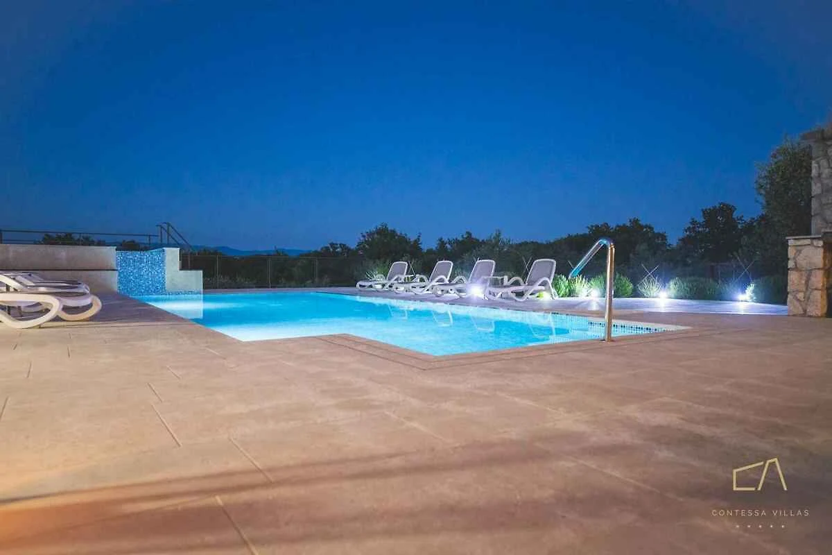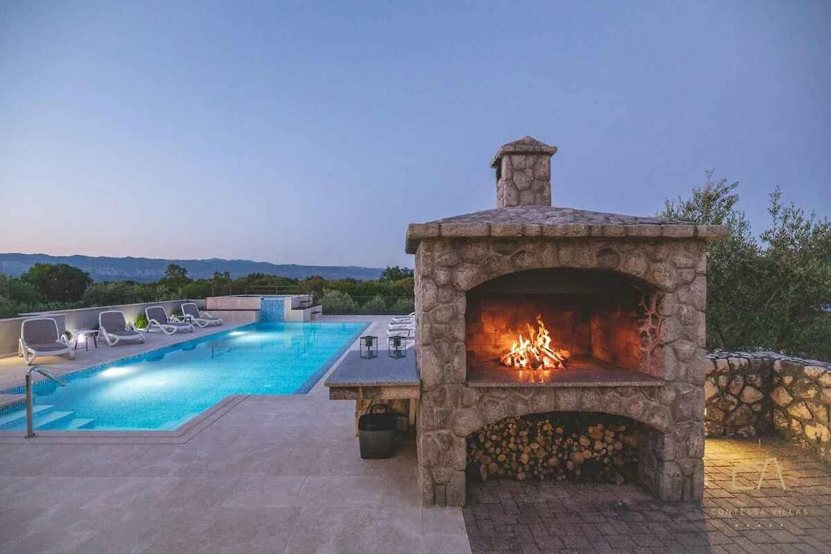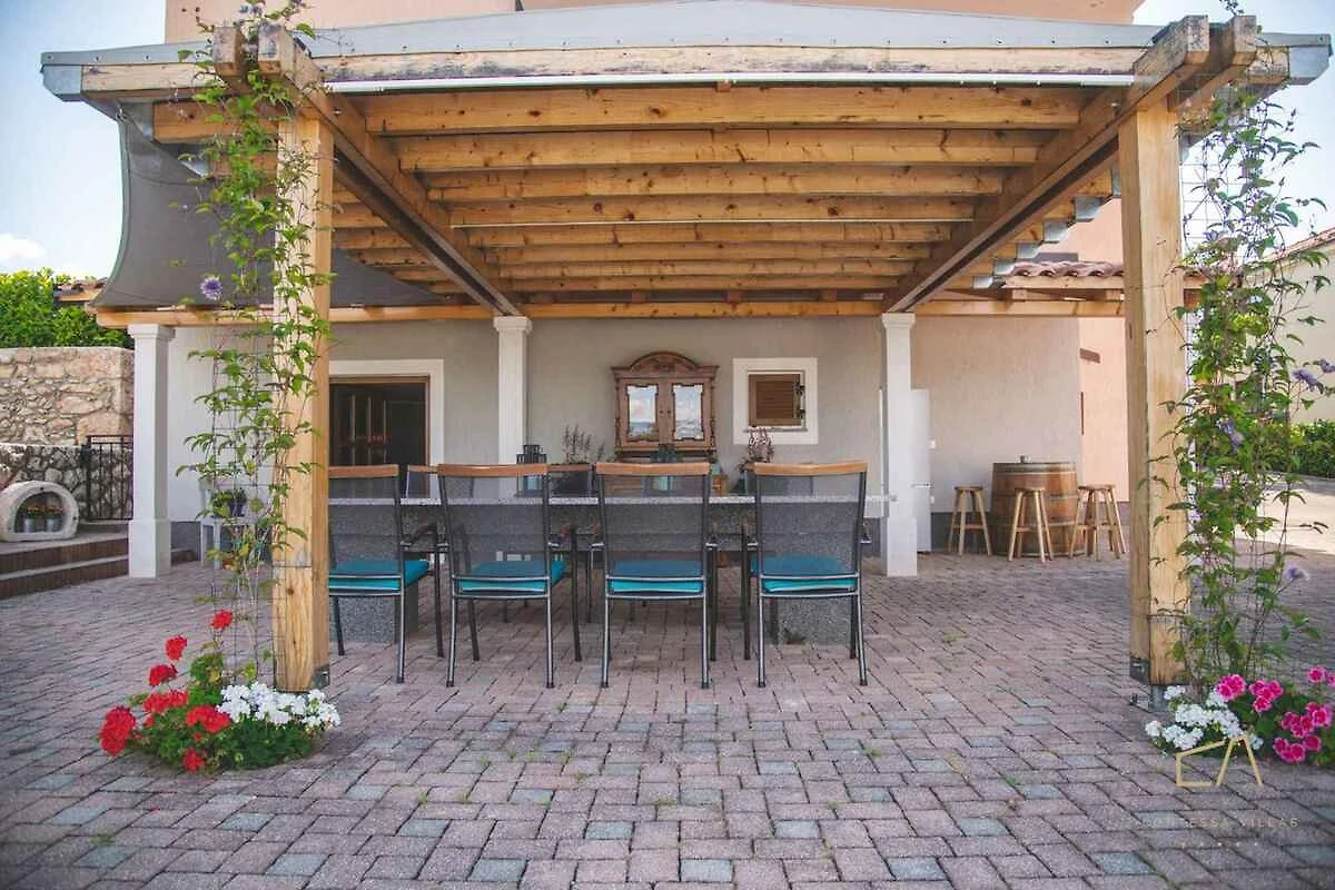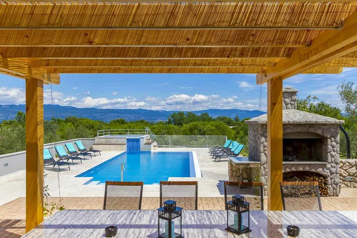 Sveti Vid Dobrinjski. Casa vacanze con piscina, jacuzzi, barbecue e wine bar, la lussuosa villa Jele***** sull'isola di Krk è un'oasi tranquilla a 3 chilometri dal mare, che offre fantastiche viste sul mare e completa privacy vicino alle famose attrazioni turistiche.