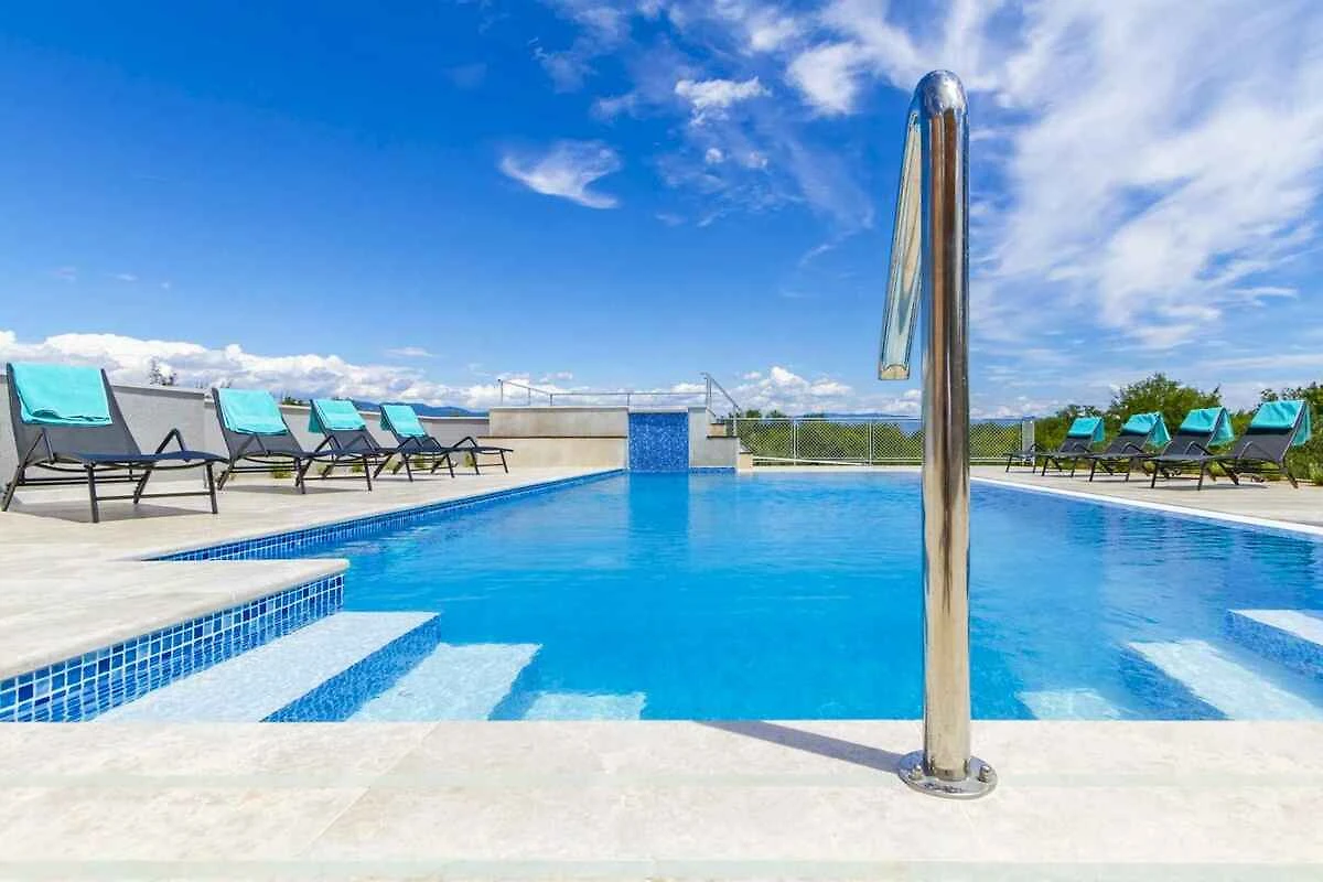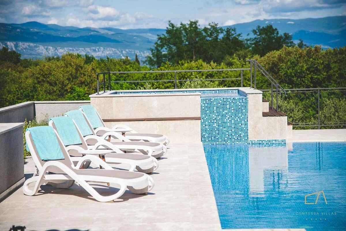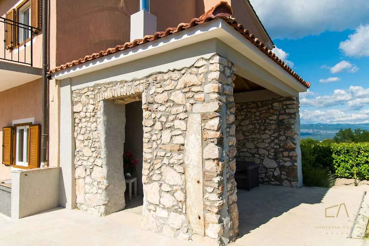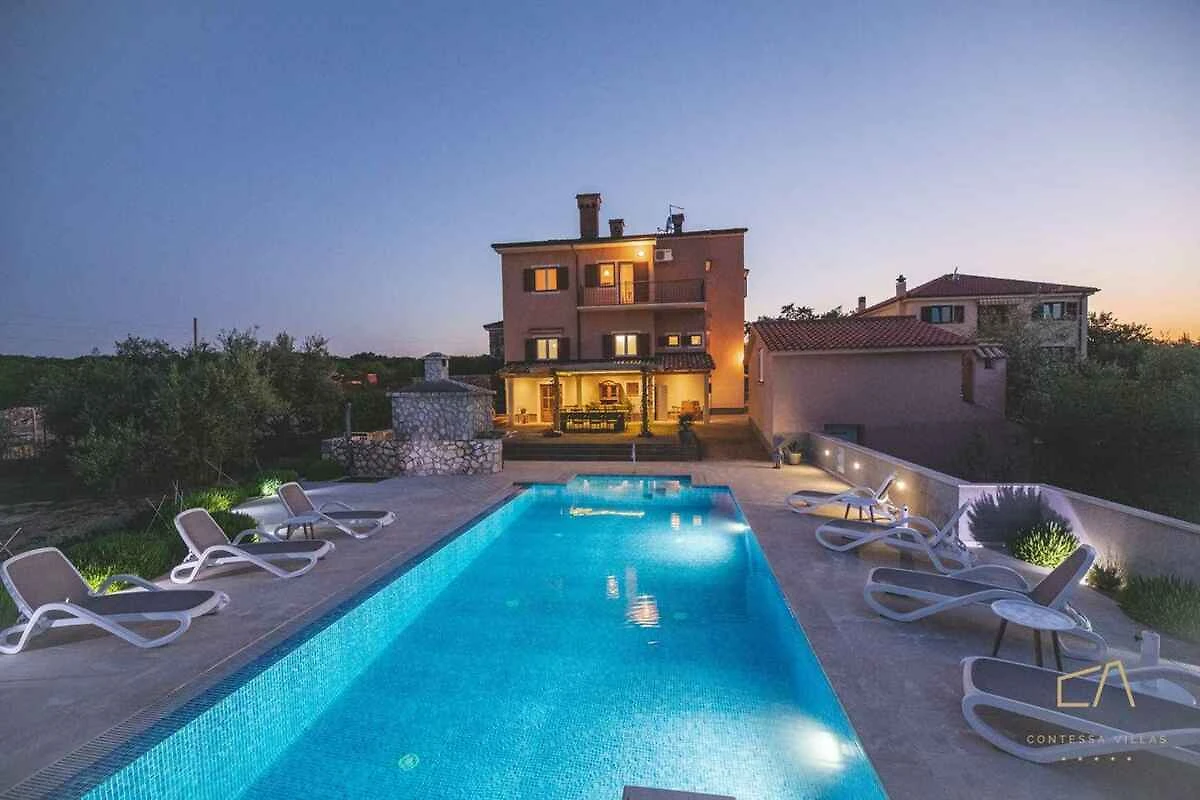 Sveti Vid Dobrinjski. Casa vacanze con piscina, jacuzzi, barbecue e wine bar, la lussuosa villa Jele***** sull'isola di Krk è un'oasi tranquilla a 3 chilometri dal mare, che offre fantastiche viste sul mare e completa privacy vicino alle famose attrazioni turistiche.