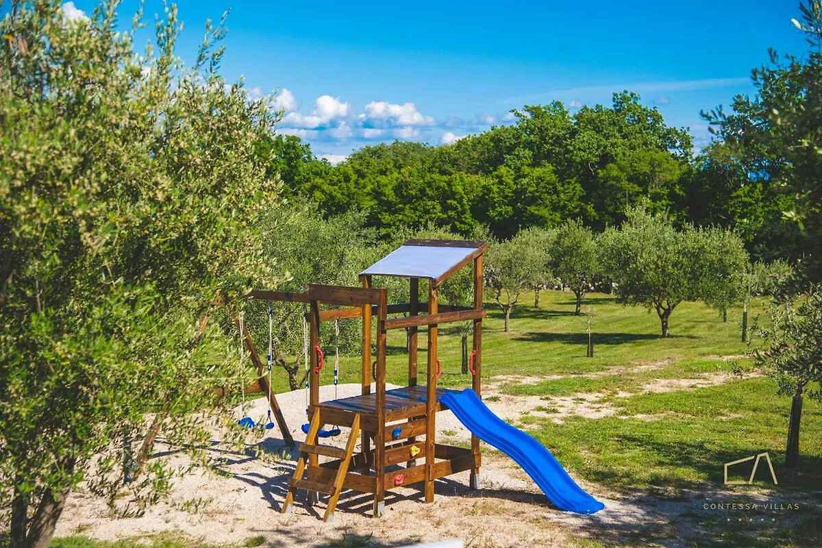 La villa. Attrezzature in comune: ombrellone, lettino da sole, parco giochi per bambini, possibilità di grigliare e terrazza.