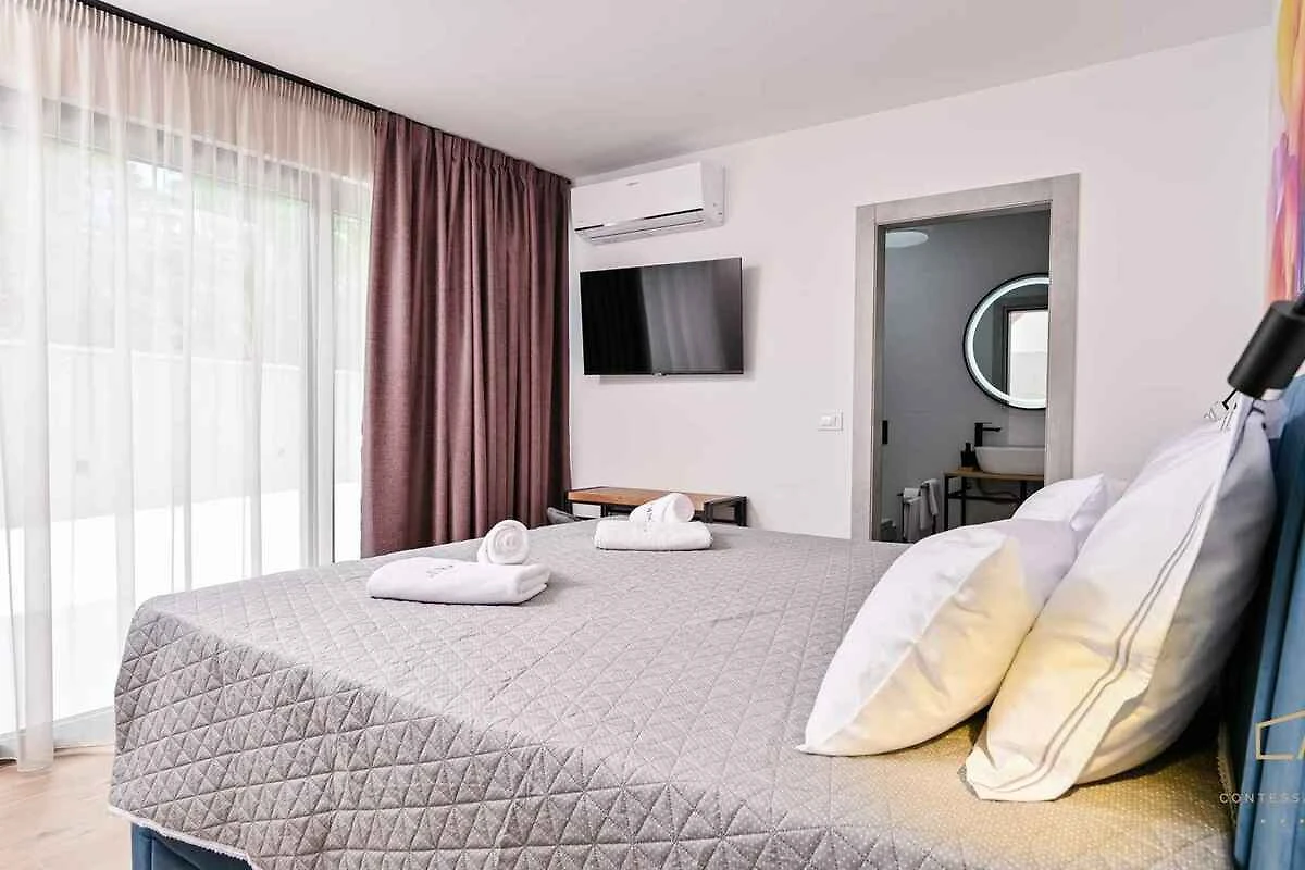 La villa è arredata moderna e di lusso. Anche a causa della vista dalla struttura sul mare e tranquilla e soleggiata posizione, il domicilio è popolare. Attrezzature ad uso esclusivo: lettino da sole, possibilità di grigliare e terrazza.