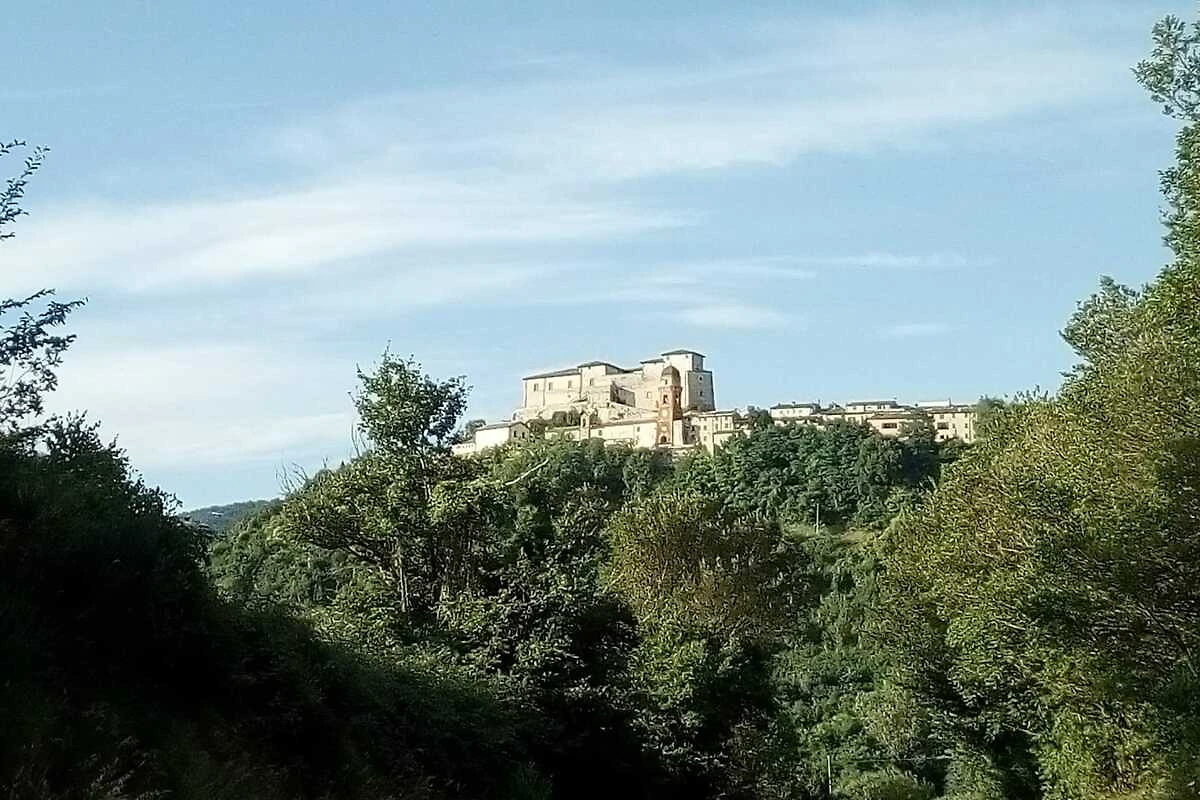 Frontone: piccolo borgo medievale con castello affascinante. Situato ai piedi del massiccio del monte Catria, Frontone, già denominata “la Svizzera delle Marche” e “la Perla del Catria” è considerata meta ideale di soggiorni, tanto in estate, quanto in inverno. Nel XXI° Canto del Paradiso della Divina Commedia, al versetto 108, Dante così scrive: "Tra' due liti d'Italia surgon sassi, e non molto distanti a la tua patria, tanto che ' troni assai suonan più bassi, e fanno un gibbo che si chiama Catria, di sotto al quale è consecrato un ermo, che suole esser disposto a sola latria". Nella stagione estiva si può godere di un clima mite e salubre, percorrendo i numerosi sentieri naturalistici sia a valle che lungo i pianori e le faggete del monte Catria; in inverno, la rinnovata funivia vi condurrà da quota 500 metri s.l.m di Caprile, ai 1400 metri s.l.m di Cupa delle Cotaline, direttamente sulle piste innevate da sci e al ristorante e alle camere del Rifugio Cotaline. Non sarà difficile poter incontrare o comunque scorgere la ricca fauna del monte Catria costituita da specie di grande interesse scientifico: da ricordare l'Aquila reale, che su queste vette nidifica, il Pellegrino, la Coturnice, il Passero solitario, il Picchio muraiolo e il Fringuello Alpino; e inoltre daini, caprioli, mufloni; in primavera, la magica fioritura delle numerose essenze vegetali di questa montagna, vi stupiranno e vi incanteranno: vistosissime sono le fioriture di Viola di Eugenia (Viola eugeniae), Primula (Primula veris), Genziane (Gentiana verna, Gentiana columnae), Narciso (Narcissus poeticus), varie Orchidee e Nontiscordardimé (Myosotis alpestris).