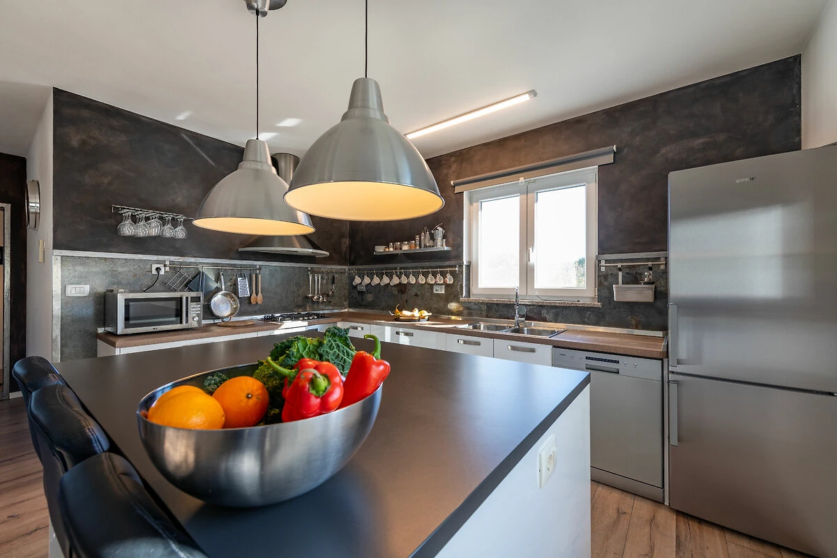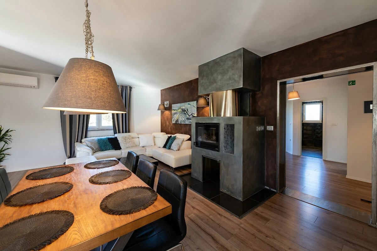 Villa Kalac è un'affascinante, moderna casa vacanze di 84 m², situata in un giardino completamente recintato di 1.378 m² nel tranquillo villaggio di Kapelica presso Labin. Questo splendido appartamento arredato e climatizzato dispone di due eleganti camere da letto con letti king-size, tre bagni e un luminoso soggiorno con ampie porte in vetro che offrono una vista sul giardino e sulla piscina privata. Godetevi giornate rilassanti in piscina con lettini e ombrelloni o cucinate specialità locali nella cucina estiva sotto il padiglione, equipaggiata con un camino tradizionale e una griglia a carbone. Tutte le stanze sono situate al piano terra, compresa la cucina ben attrezzata e l'accogliente zona living, così che tutti gli ospiti abbiano facile accesso e comfort. Con WiFi gratuito, televisori in ogni camera da letto, un lettino per bambini e parcheggi sicuri per fino a quattro veicoli, la Villa Kalac è perfettamente adatta per famiglie o amici che cercano privacy e relax. L'appartamento all'ultimo piano della villa è utilizzato dai proprietari cordiali, ma la privacy e la tranquillità assolute sono garantite.