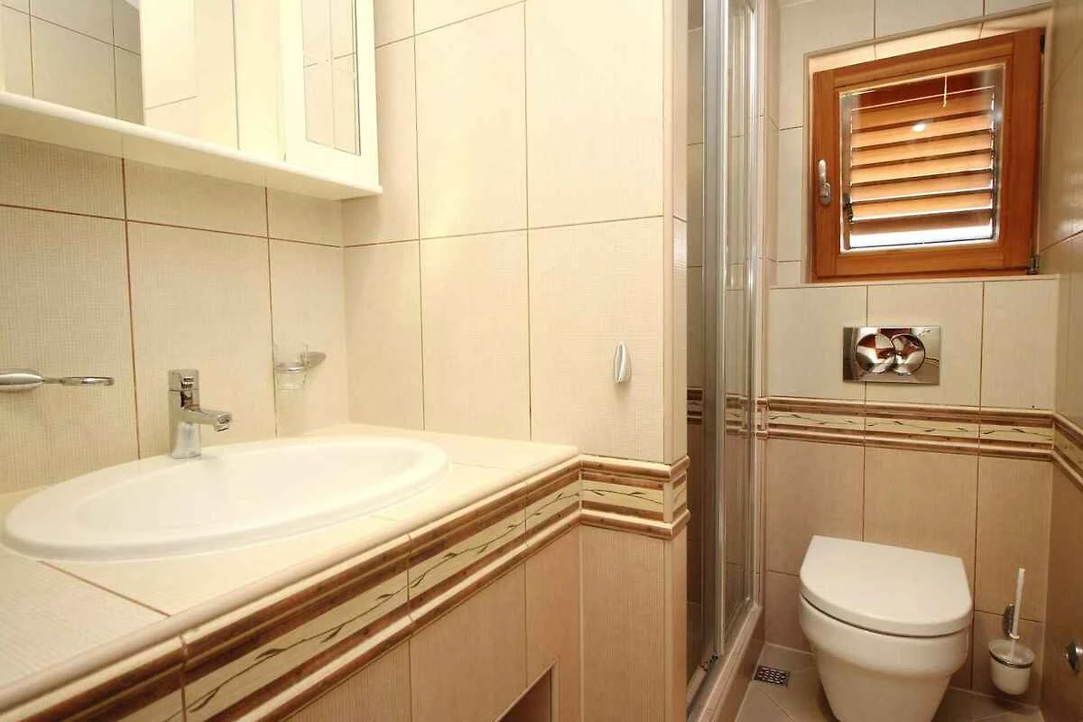 L' appartamento vacanze si trova in un appartamento casa ed è arredato moderno. La proprietà si trova in una zona residenziale, in periferia. Anche a causa della vista dalla struttura sul mare e soleggiata posizione, il domicilio è popolare.