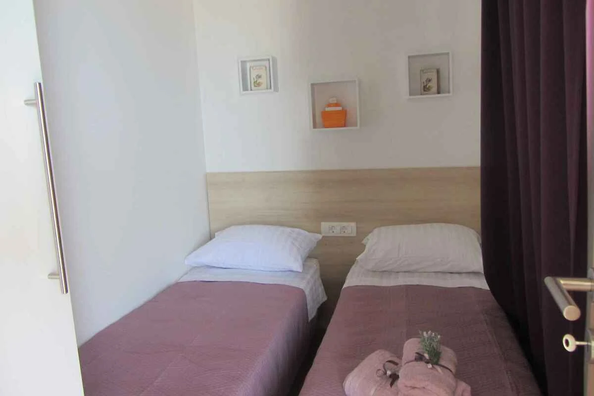 Biograd na Moru. La casa vacanza si trova in una trama del giardino chiuso, grande 300 mq con alberi, delimitata da una recinzione. L'accesso avviene vicino a una strada secondaria (asfaltata). Parcheggio sulla proprietà.