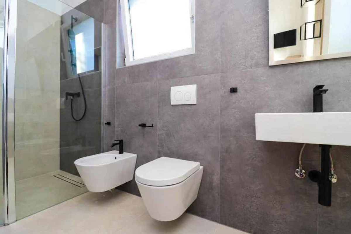 L'ingresso della sua villa é a livello del suolo. Soggiorno con TV. 2 camere da letto tutto a con 1 letto matrimoniale e TV. Camera da letto con 1 letto matrimoniale e TV. Camera da letto con 1 letto matrimoniale, TV e accesso alla terrazza. Cucina con stufa a gas, forno, lavastoviglie, frigorifero, microonde, caffettiera e tostapane. 5 bagni tutto a con doccia e asciugacapelli.