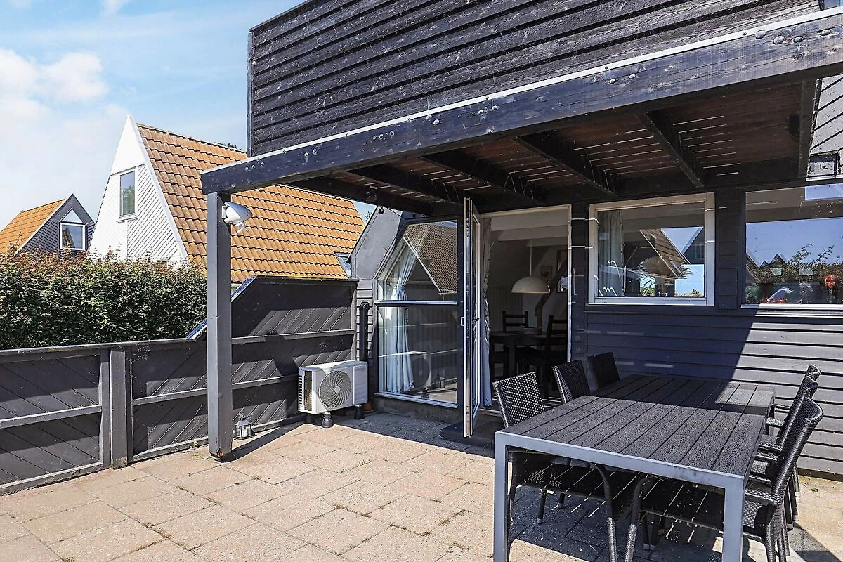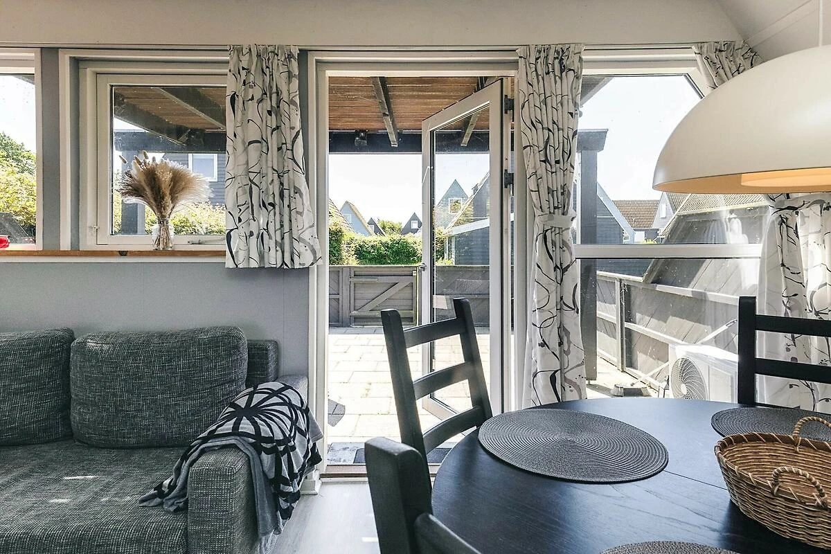 Il cottage dispone di due terrazze, una piccola di fronte alla casa con mobili da giardino e vista sui campi. L'ampia terrazza è dotata di mobili da giardino, un lettino prendisole e una griglia a carbone per quando si desidera preparare una cenetta. Se cade qualche goccia di pioggia, una piccola parte della terrazza viene coperta, così potrete prolungare il vostro divertimento serale.