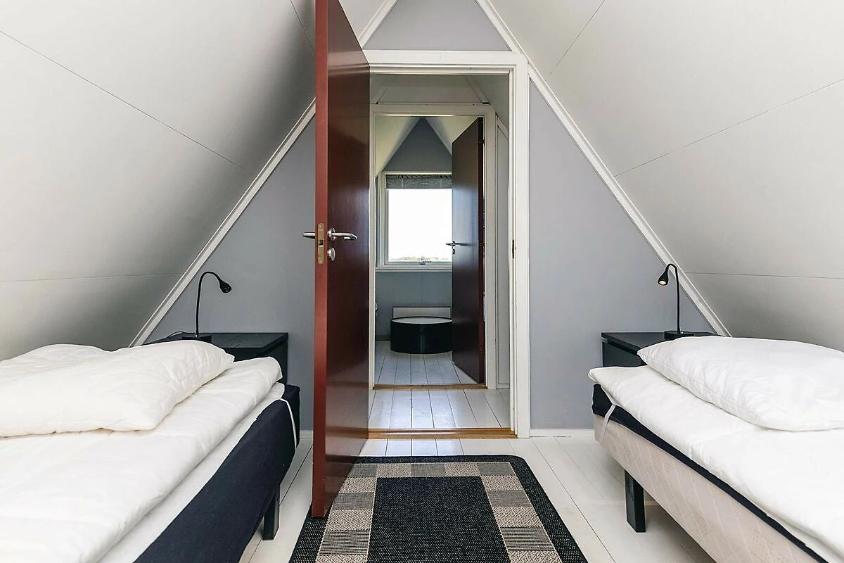 Il cottage dispone di due camere da letto al primo piano, ciascuna con due letti singoli. Il soggiorno/cucina è a pianta aperta e la cucina è dotata di macchina per il caffè, piano cottura elettrico con forno, microonde e frigorifero con congelatore. Il soggiorno dispone di una TV con Chromecast. Il bagno del cottage è dotato di WC, lavandino, doccia e un grazioso riscaldamento a pavimento.