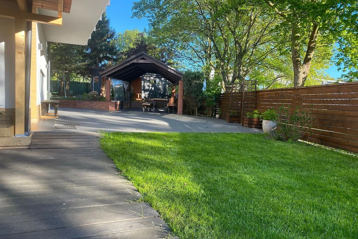 Nell'area recintata si trova una sauna (inclusa nel prezzo del soggiorno) con una vasca dove potersi rinfrescare, un parco giochi per bambini con un trampolino, una cucina estiva, un parcheggio e un bel gazebo con barbecue e attrezzatura per grigliate. La proprietà ha accesso diretto alla riva del fiume, dove potrete rilassarvi sulle sedie a sdraio o dedicarvi alla pesca. È inoltre disponibile una barca a remi per tutti gli ospiti della struttura (gratuitamente).