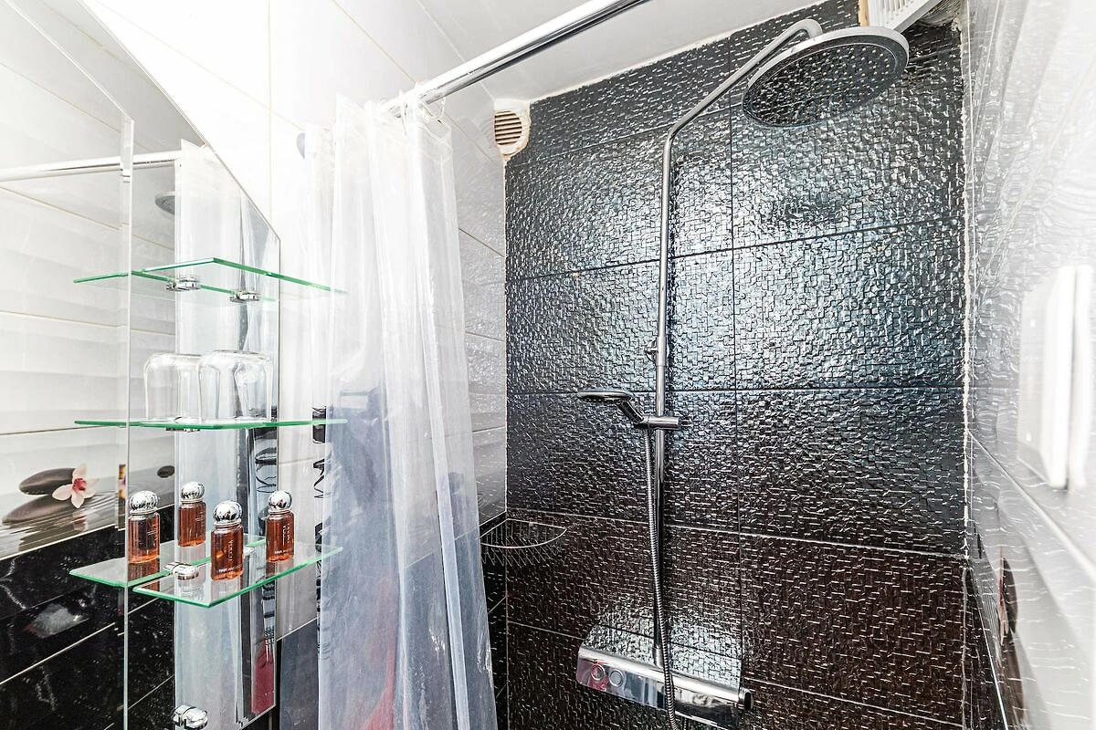 This studio apartment with large double bed is perfectly fit for two people. It features free air conditioning as well as LCD TV. Kitchen is well equipped with an oven, refrigerator, water kettle, microwave, coffee maker and kitchen utensils. The private bathroom comes with shower and toilet.Free toiletries (shampoo, soap and toilet paper), hair dryer as well as linens and towels are