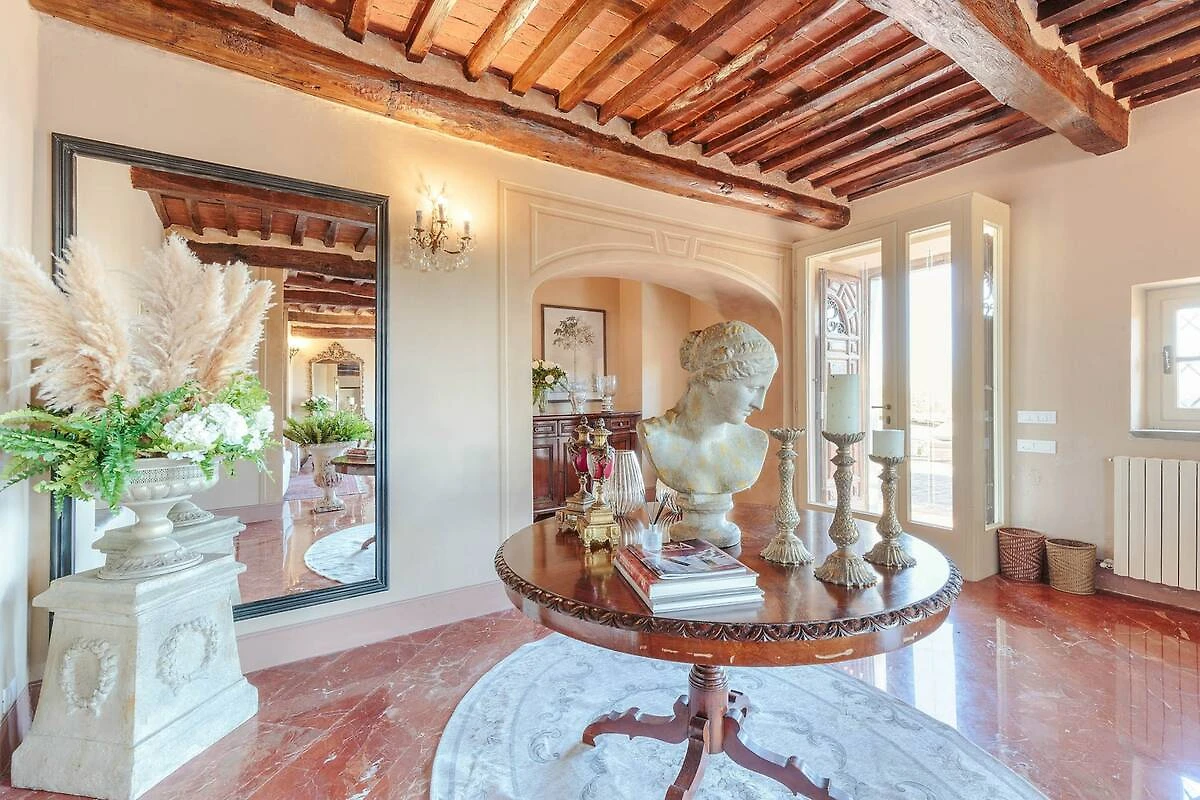 Benvenuti a Villa Medea, un'incantevole tenuta toscana dove il fascino del XVI secolo incontra la raffinata vita moderna. Situata appena fuori Lucca, tra antichi cipressi, uliveti e giardini terrazzati, questa magnifica villa accoglie fino a 20 ospiti in un'atmosfera di eleganza, calore e spazio.